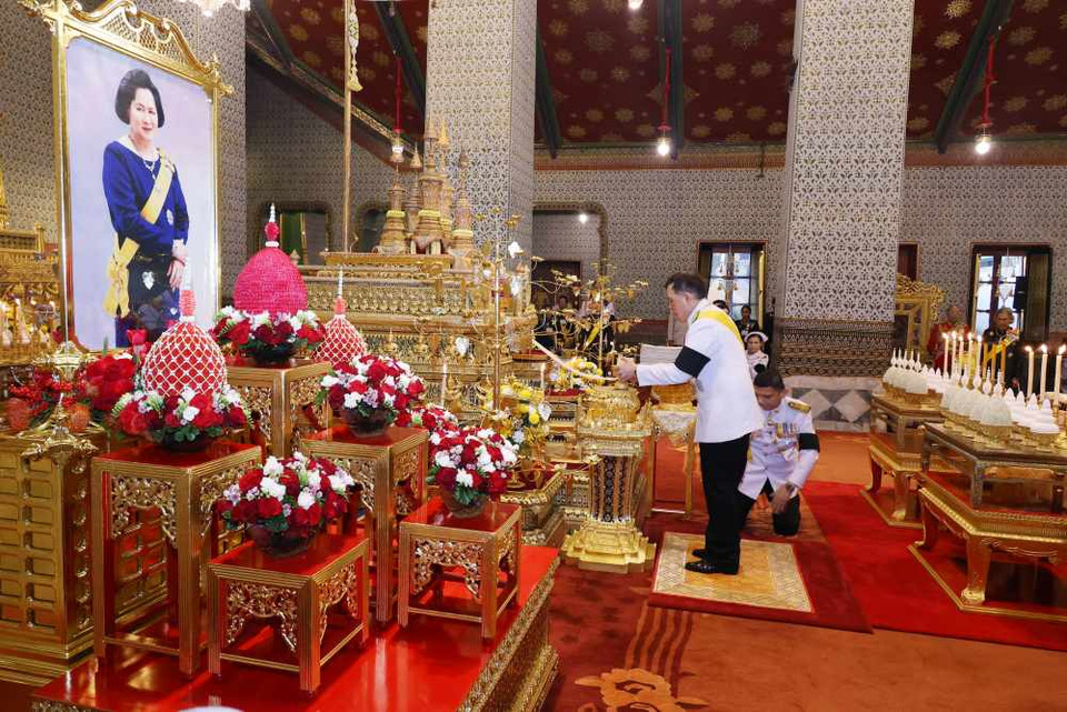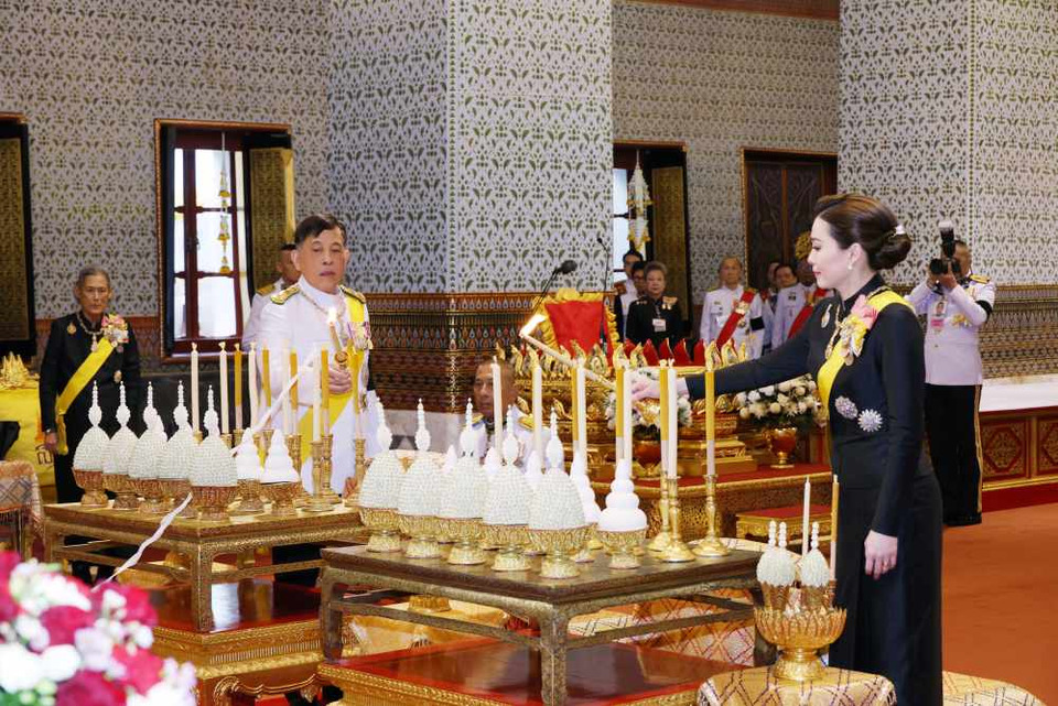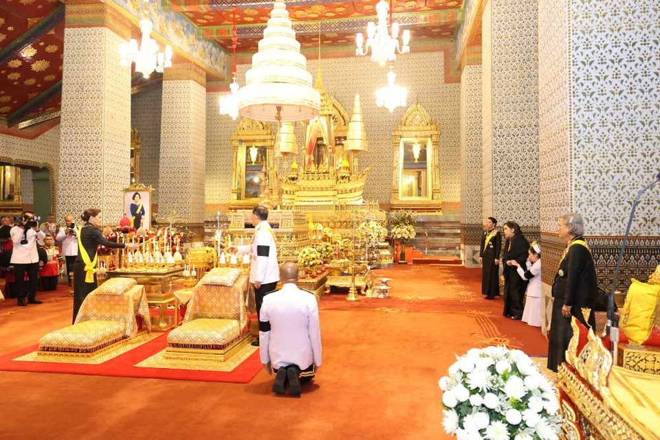 เมื่อเสด็จพระราชดำเนินถึงพระที่นั่งอมรินทรวินิจฉัย พระบาทสมเด็จพระเจ้าอยู่หัว ทรงจุดธูปเทียนเครื่องนมัสการพานทองสองชั้นบูชาพระพุทธปฏิมาชัยวัฒน์ รัชกาลที่ 9 พระพุทธมหาราช ฉ ปริวัตน์ และพระพุทธรูปประจำพระชนมวารของพระบรมอัฐิพระบาทสมเด็จพระบรมชนกาธิเบศร มหาภูมิพลอดุลยเดชมหาราช บรมนาถบพิตร พระพุทธรูปประจำพระชนมวารของพระบรมอัฐิพระบาทสมเด็จพระปรเมนทรมหาอานันทมหิดล พระอัฐมรามาธิบดินทร พระพุทธรูปประจำพระชนมวารของพระอัฐิสมเด็จพระมหิตลาธิเบศร อดุลยเดชวิกรม พระบรมราชชนก พระพุทธรูปประจำพระชนมวารของพระอัฐิสมเด็จพระศรีนครินทราบรมราชชนนี และพระพุทธรูปประจำพระชนมวารของพระอัฐิสมเด็จพระเจ้าพี่นางเธอ เจ้าฟ้ากัลยาณิวัฒนา กรมหลวงนราธิวาสราชนครินทร์ ที่หน้าพระที่นั่งบุษบกมาลา ทรงกราบ ทรงจุดธูปเทียนเครื่องราชสักการะทองลงยาราชาวดี และทรงจุดธูปเทียนเครื่องทองน้อยกราบถวายบังคมพระบรมอัฐิพระบาทสมเด็จพระบรมชนกาธิเบศร มหาภูมิพลอดุลยเดชมหาราช บรมนาถบพิตร พระบาทสมเด็จพระปรเมนทรมหาอานันทมหิดล พระอัฐมรามาธิบดินทร และพระอัฐิสมเด็จพระมหิตลาธิเบศร อดุลยเดชวิกรม พระบรมราชชนก สมเด็จพระศรีนครินทราบรมราชชนนี และสมเด็จพระเจ้าพี่นางเธอ เจ้าฟ้ากัลยาณิวัฒนา กรมหลวงนราธิวาสราชนครินทร์ ซึ่งประดิษฐานที่พระแท่นพระนพปฎลมหาเศวตฉัตร สมเด็จพระนางเจ้า ฯ พระบรมราชินี ทรงจุดธูปเทียนเครื่องราชสักการะทองลงยารองและทรงจุดธูปเทียนเครื่องทองน้อยกราบถวายบังคมพระบรมอัฐิและพระอัฐิ ทรงกราบ เสร็จแล้ว