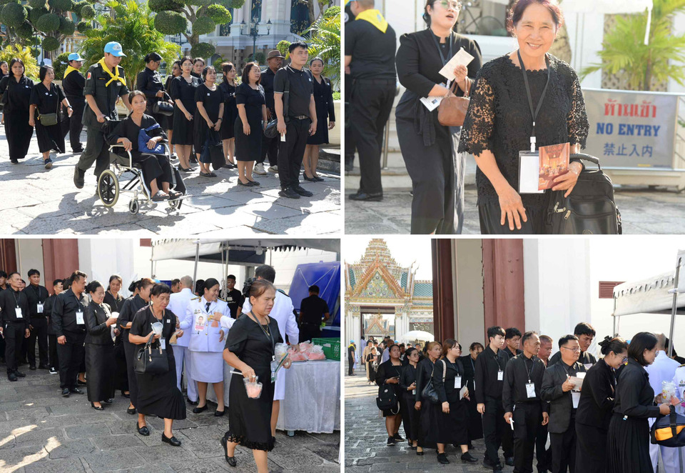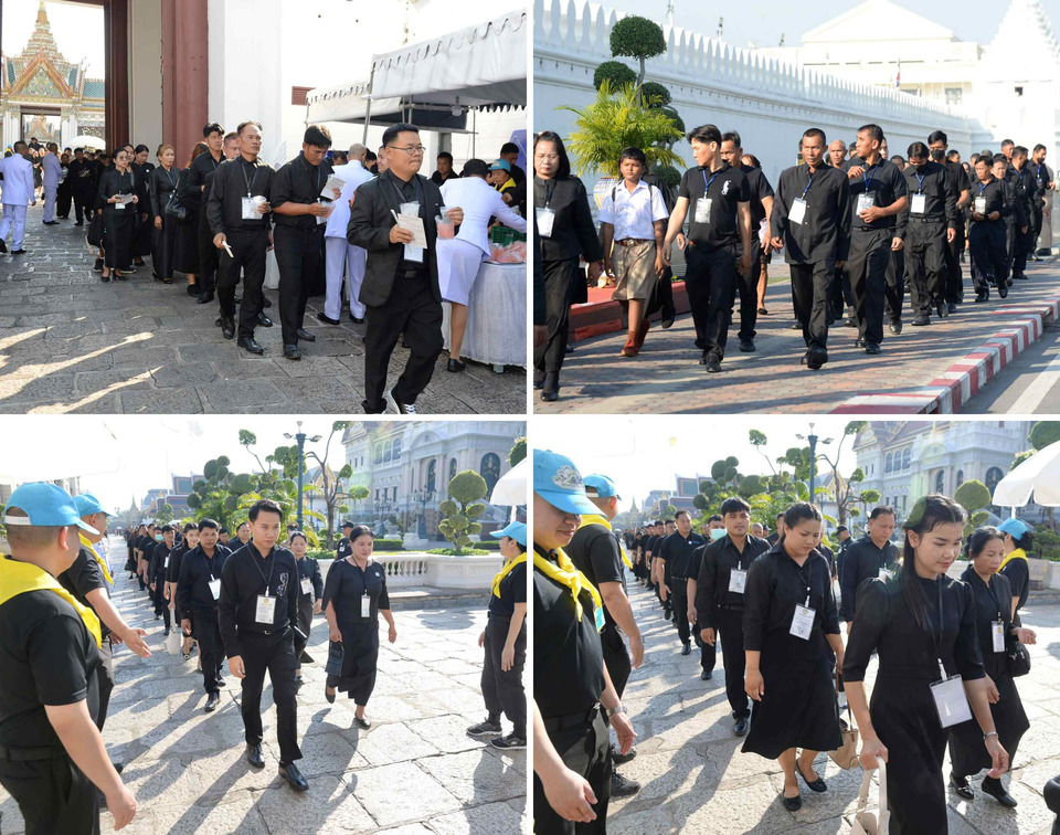 ทั้งนี้ เพื่อความสะดวกรวดเร็ว กรุงเทพมหานครขอความร่วมมือประชาชนที่จะเดินทางมากราบถวายบังคมพระบรมศพ โปรดแต่งกายสุภาพไว้ทุกข์ (สีดำหรือขาว) เสื้อคอปก รองเท้าหุ้มส้น งดเสื้อคอกลม งดแขนกุด งดกางเกงหรือกระโปรงสั้น งดกางเกงหรือกระโปรงยีนส์ สุภาพสตรีต้องสวมกระโปรงหรือผ้านุ่งยาวคลุมเข่าเท่านั้น ส่วนนักเรียน นักศึกษาควรสวมเครื่องแบบที่ถูกต้องตามระเบียบ
