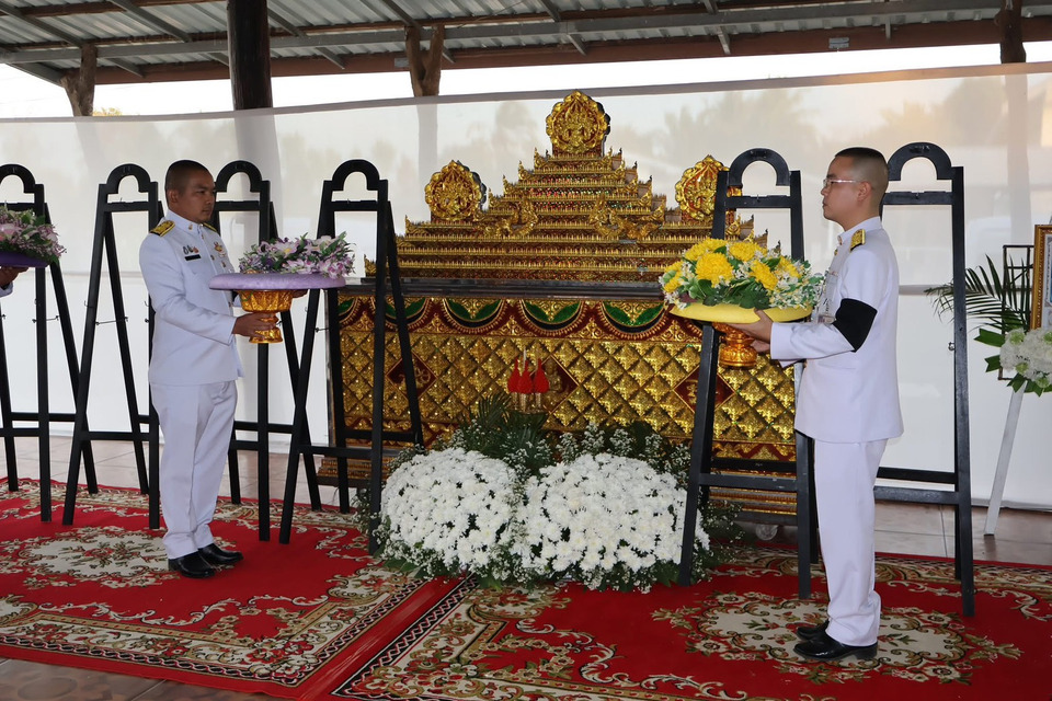 ในโอกาสนี้ สมเด็จพระกนิษฐาธิราชเจ้า กรมสมเด็จพระเทพรัตนราชสุดา เจ้าฟ้ามหาจักรีสิรินธร มหาวชิราลงกรณวรราชภักดี สิริกิจการิณีพีรยพัฒน รัฐสีมาคุณากรปิยชาติ สยามบรมราชกุมารี สมเด็จพระเจ้าน้องนางเธอ เจ้าฟ้าจุฬาภรณวลัยลักษณ์ อัครราชกุมารี กรมพระศรีสวางควัฒน วรขัตติยราชนารี ทูลกระหม่อมหญิงอุบลรัตนราชกัญญา สิริวัฒนาพรรณวดี พระเจ้าวรวงศ์เธอ พระองค์เจ้าโสมสวลี กรมหมื่นสุทธนารีนาถ สมเด็จพระเจ้าลูกเธอ เจ้าฟ้าพัชรกิติยาภา นเรนทิราเทพยวดี กรมหลวงราชสาริณีสิริพัชร มหาวัชรราชธิดา สมเด็จพระเจ้าลูกเธอ เจ้าฟ้า สิริวัณณวรี นารีรัตนราชกัญญา สมเด็จพระเจ้าลูกยาเธอ เจ้าฟ้าทีปังกรรัศมีโชติ มหาวชิโรตตมางกูร สิริวิบูลยราชกุมาร พระเจ้าวรวงศ์เธอ พระองค์เจ้าสิริภาจุฑาภรณ์ และพระเจ้าวรวงศ์เธอ พระองค์เจ้าอทิตยาทรกิติคุณ และเจ้าคุณพระสินีนาถ พิลาสกัลยาณี ทรงพระกรุณาโปรดเกล้าโปรดกระหม่อม และโปรดให้ ผู้ว่าราชการจังหวัดอุบลราชธานี เชิญพวงมาลาพระราชทาน และพวงมาลาประทาน วางที่หน้าหีบศพด้วย ต่อจากนั้น