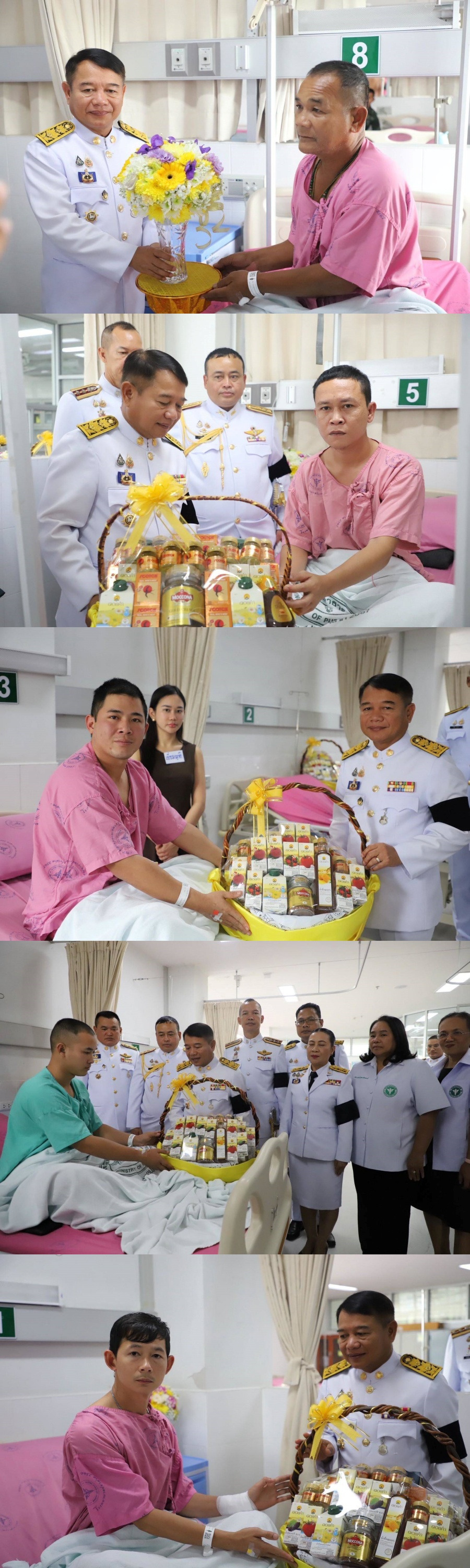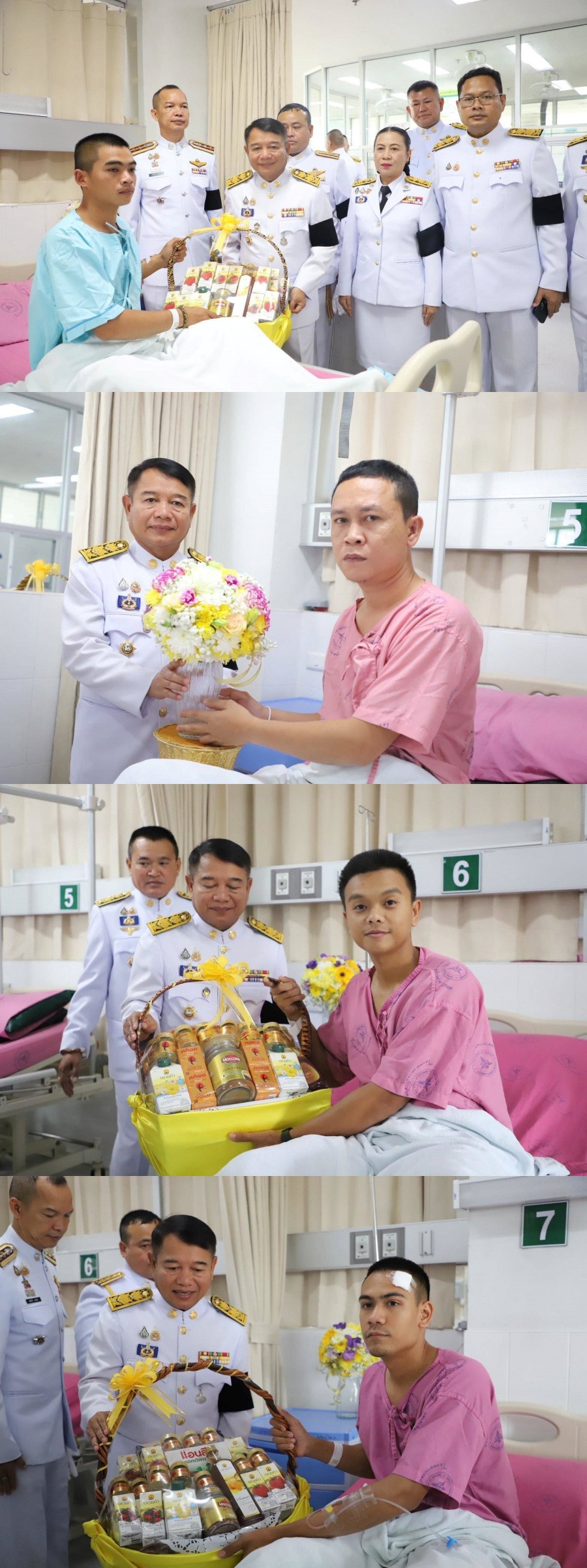 วันที่ 12 ธันวาคม 2568 เวลา 11.30 น. พระบาทสมเด็จพระเจ้าอยู่หัว ทรงพระกรุณาโปรดเกล้าโปรดกระหม่อมให้ นายจำเริญ แหวนเพ็ชร ผู้ว่าราชการจังหวัดสุรินทร์ เชิญดอกไม้ และตะกร้าสิ่งของพระราชทานของพระบาทสมเด็จพระเจ้าอยู่หัว และสมเด็จพระนางเจ้า ฯ พระบรมราชินี ไปมอบแก่ ร้อยเอก ปูรณ์ ทองพ่วง จ่าสิบโท แสนชัย ชาติชำนาญ สิบเอก ปิยวัฒน์ โสภา สิบเอก วุฒิชัย ทองทวี สิบเอก สัญญา โพธิ์ชัย สิบโท สมหมาย วงศ์คำผา สิบโท ชินวัฒน์ กรินดา สิบโท ธนดล เสกกล้า พลหทาร อิสรชน ไกรศรีวรรธนะ พลทหาร กิตติโชติ ศรีสุลัย พลทหาร สิขรินทร์ นิลหล้า พลทหาร วันชัย ลำไพรพันนา พลทหารณัฐวุฒิ ล้อมไธสง พลทหาร วีรภัทร อ่อนน้อม พลทหาร เอกชัย คงเมตตาจิต พลทหาร สิทธา แสงสี ทหารพราน อภิวัฒน์ อยู่ประพิส ทหารพราน สมภัก สีลา และอาสาสมัครทหารพราน สัม พูนประโคน ที่ได้รับบาดเจ็บจากหตุการณ์ความไม่สงบในพื้นที่จังหวัดชายแดนไทย – กัมพูชา และเข้ารับการรักษาพยาบาล ณ โรงพยาบาลปราสาท อำเภอปราสาท จังหวัดสุรินทร์
