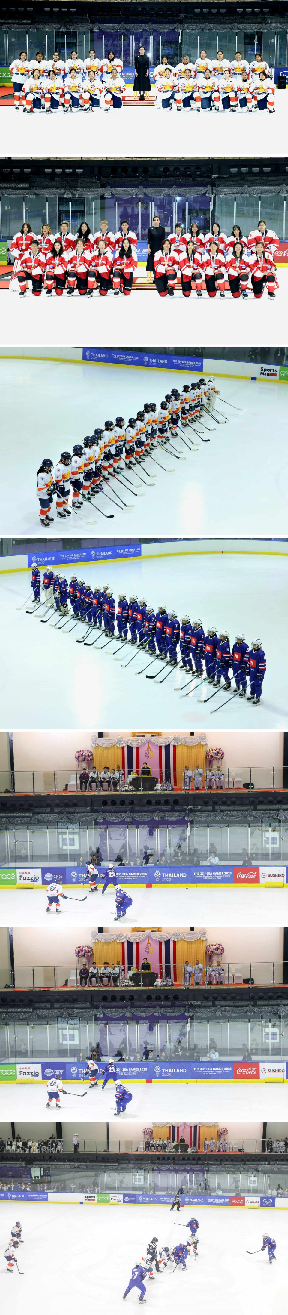 ต่อจากนั้น ทอดพระเนตรการแข่งขันกีฬาฮอกกี้น้ำแข็ง รอบชิงชนะเลิศ ประเภททีมหญิง ระหว่างประเทศไทย และสาธารณรัฐฟิลิปปินส์ โดยการแข่งขันแบ่งออกเป็น 3 พีเรียด (Period) พีเรียดละ 20 นาที ใช้เวลาประมาณ 2 ชั่วโมง เมื่อจบการแข่งขัน 3 พีเรียดแล้ว ทีมชาติชาติไทย ชนะทีมชาติฟิลลิปินส์ ไป 13 ต่อ 4 ประตู