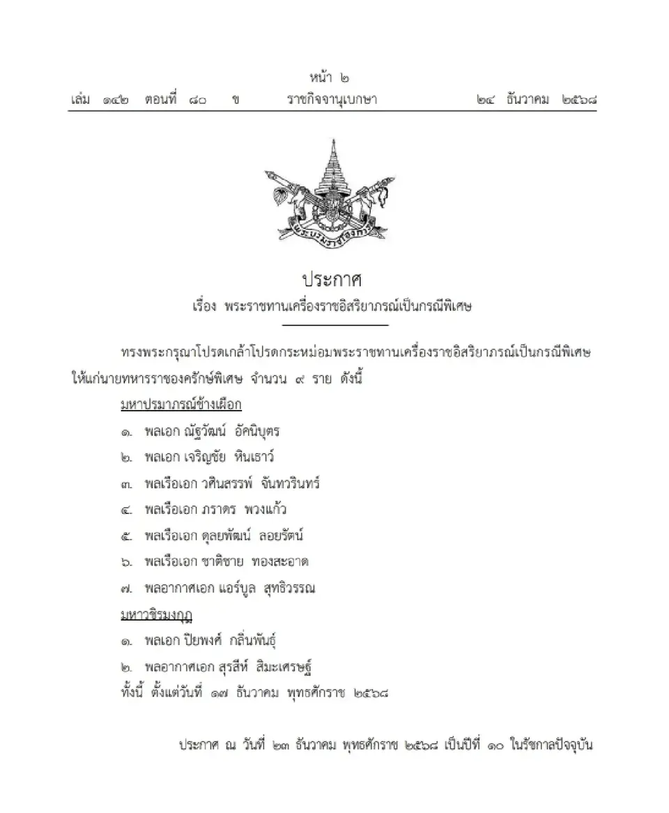 ประกาศ ณ วันที่ 23 ธันวาคม พุทธศักราช 2568 เป็นปีที่ 10 ในรัชกาลปัจจุบัน