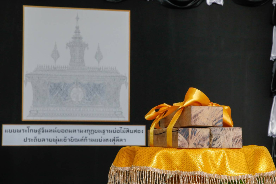 ซึ่งไม้จันทน์หอมดังกล่าวคัดเลือกจากอุทยานแห่งชาติกุยบุรี จังหวัดประจวบคีรีขันธ์ เป็นไม้ยืนต้นตายตามธรรมชาติ ลำต้นตรงเหมาะสม โดยกรมอุทยานแห่งชาติ สัตว์ป่า และพันธุ์พืช ดำเนินการตัดและแปรรูปจำนวน 20 ต้น ได้ไม้แปรรูป 130 ท่อน และ 1,000 แผ่น เพื่อนำไปใช้ในการจัดสร้างพระโกศจันทน์ พระหีบจันทน์ และส่วนประกอบอื่น ๆ ในพระราชพิธีฯ