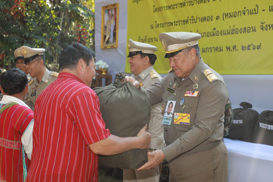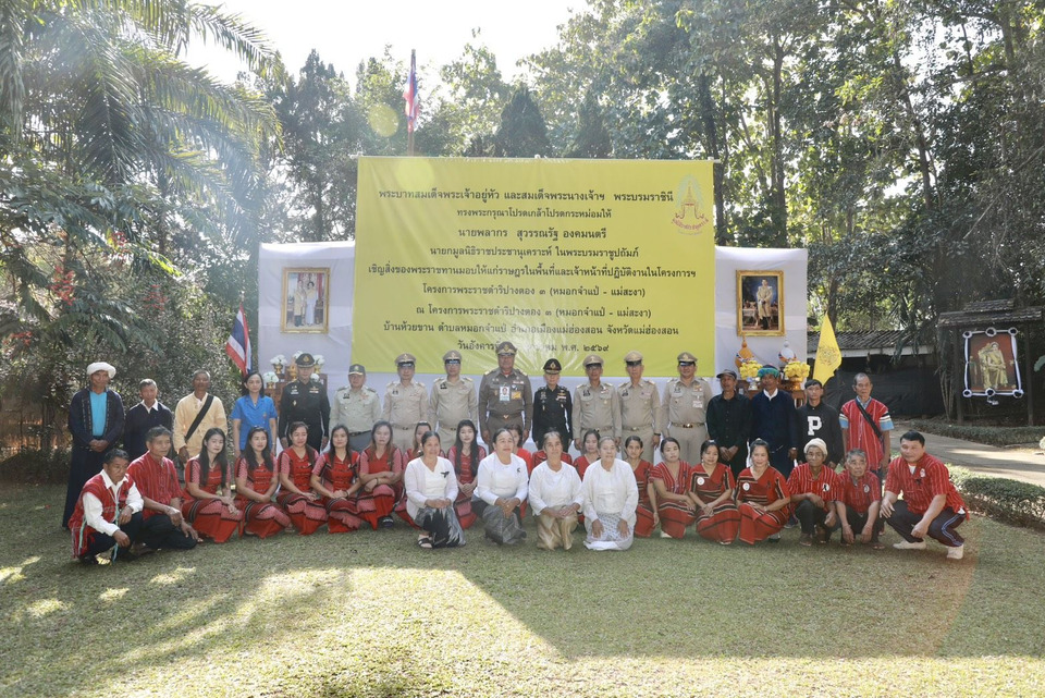 เมื่อวันที่ 27 มกราคม 2569 เวลาประมาณ 9.00 น. นายพลากร สุวรรณรัฐ องคมนตรี ประธานอนุกรรมการติดตามและขับเคลื่อนโครงการอันเนื่องมาจากพระราชดำริในพื้นที่ภาคเหนือ นายศุภรัชต์ อินทราวุธ รองเลขาธิการ กปร. พร้อมด้วย เจ้าหน้าที่มูลนิธิราชประชานุเคราะห์ ในพระบรมราชูปถัมภ์ ที่ปรึกษาคณะอนุกรรมการฯ และคณะอนุกรรมการฯ เดินทางไปยังโครงการพระราชดำริปางตอง 3 (หมอกจำแป่-แม่สะงา) บ้านห้วยขาน ตำบลหมอกจำแป่ อำเภอเมืองแม่ฮ่องสอน จังหวัดแม่ฮ่องสอน เพื่อเชิญสิ่งของพระราชทานจากพระบาทสมเด็จพระเจ้าอยู่หัว และสมเด็จพระนางเจ้า ฯ พระบรมราชินี ไปมอบแก่ราษฎรและผู้ปฏิบัติงานในพื้นที่โครงการ ได้แก่ เสื้อกันหนาวสำหรับเด็ก จำนวน 102 ตัว และถุงพระราชทาน จำนวน 128 ถุง