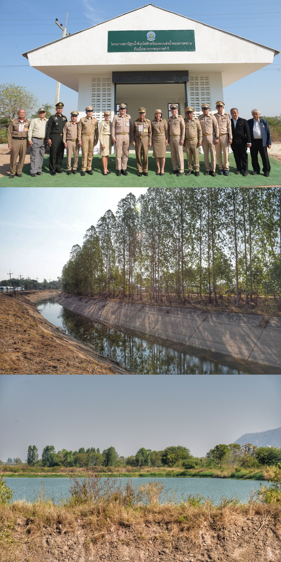 วันพฤหัสบดีที่ 29 มกราคม เวลา 09.30 น. พลอากาศเอก ชลิต พุกผาสุข องคมนตรี ประธานอนุกรรมการติดตามและขับเคลื่อนโครงการอันเนื่องมาจากพระราชดำริในพื้นที่ภาคกลาง พลอากาศเอก จอม รุ่งสว่าง องคมนตรี รองประธานอนุกรรมการฯ พร้อมด้วย นายศุภรัชต์ อินทราวุธ รองเลขาธิการ กปร. และคณะอนุกรรมการฯ เดินทางไปยังวัดสาลวนาราม ตำบลดอนตาเพชร อำเภอพนมทวน จังหวัดกาญจนบุรี เพื่อติดตามความคืบหน้าโครงการสถานีสูบน้ำด้วยไฟฟ้าพร้อมระบบส่งน้ำดอนตาเพชร 2 อันเนื่องมาจากพระราชดำริ อำเภอพนมทวน จังหวัดกาญจนบุรี โอกาสนี้ องคมนตรี ได้ถวายเครื่องไทยธรรม แด่พระสงฆ์ จำนวน 2 รูป จากนั้น รับฟังการบรรยายสรุปผลการดำเนินงานและการบริหารจัดการน้ำของโครงการ ในการนี้ องคมนตรี ได้ขอให้หน่วยงานที่เกี่ยวข้องร่วมกันดำเนินโครงการตลอดจนขยายผลการพัฒนาในด้านต่าง ๆ ทั้งดิน น้ำ เกษตร เพื่อสร้างประโยชน์แก่ประชาชนในพื้นที่ และขอให้จัดตั้งกลุ่มผู้ใช้น้ำ พัฒนาต่อยอดเป็นสหกรณ์กลุ่มผู้ใช้น้ำเพื่อร่วมกันบริหารจัดการน้ำให้เกิดความเป็นธรรมและเกิดประสิทธิภาพสูงสุดต่อไป พร้อมกันนี้ได้มอบเมล็ดพันธุ์ข้าวพระราชทานแก่ผู้แทนราษฎรจากนั้น ลงพื้นที่ตรวจเยี่ยมพื้นที่โครงการฯ