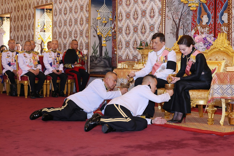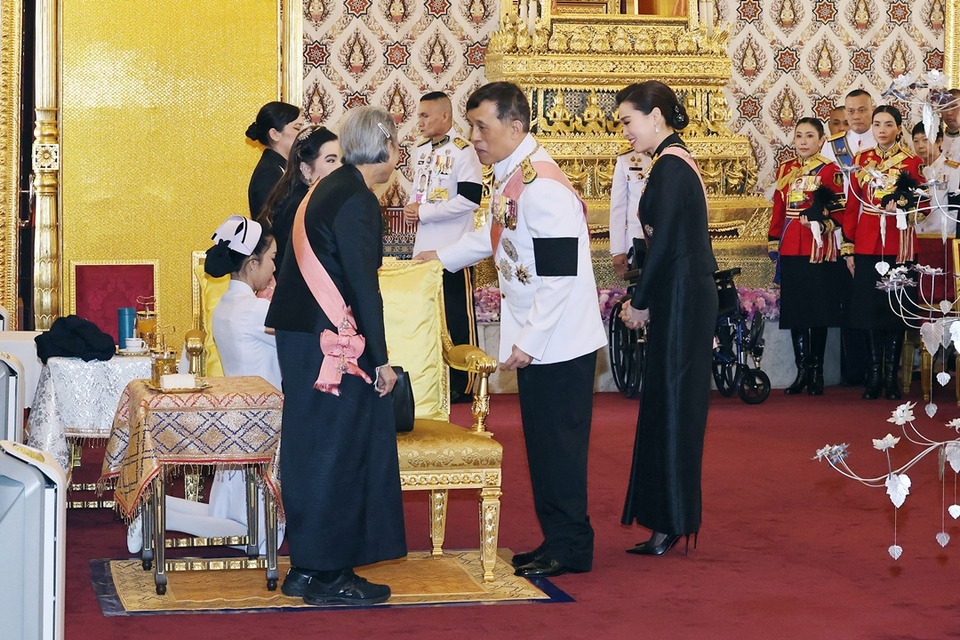 ในการนี้ สมเด็จพระกนิษฐาธิราชเจ้า กรมสมเด็จพระเทพรัตนราชสุดา เจ้าฟ้ามหาจักรีสิรินธร มหาวชิราลงกรณวรราชภักดี สิริกิจการิณีพีรยพัฒน รัฐสีมาคุณากรปิยชาติ สยามบรมราชกุมารี สมเด็จพระเจ้าน้องนางเธอ เจ้าฟ้าจุฬาภรณวลัยลักษณ์ อัครราชกุมารี กรมพระศรีสวางควัฒน วรขัตติยราชนารี และสมเด็จพระเจ้าลูกเธอ เจ้าฟ้าสิริวัณณวรี นารีรัตนราชกัญญา เฝ้าทูลละอองธุลีพระบาทรับเสด็จ ณ พระที่นั่งดุสิตมหาปราสาท พระบรมมหาราชวัง