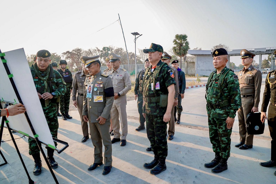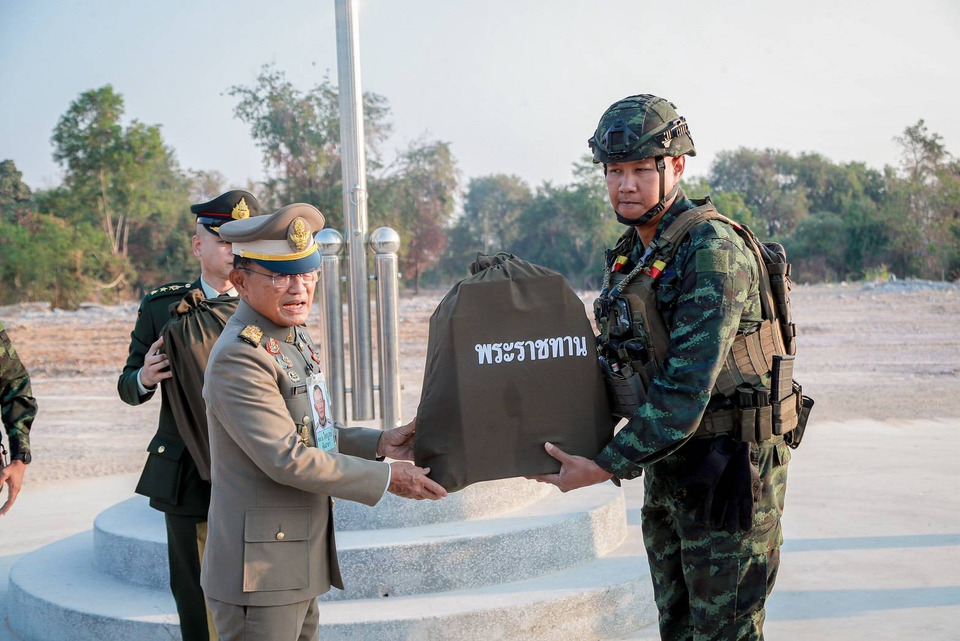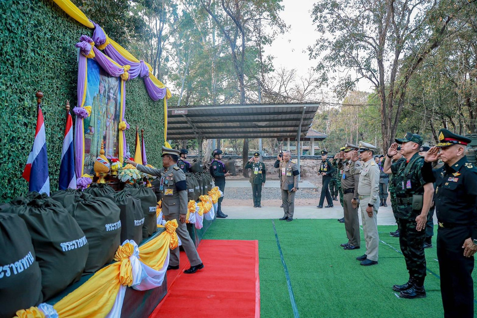 วันที่ 6 ก.พ.69 พระบาทสมเด็จพระเจ้าอยู่หัว ทรงพระกรุณาโปรดเกล้าฯ ให้พลเอก ไพบูลย์ คุ้มฉายา องคมตรี เดินทางเยี่ยมและให้กำลังใจกำลังพล ที่ปฏิบัติภารกิจปกป้องอธิปไตยตามแนวชายแดนไทย-กัมพูชา ด้าน กกล.บูรพา จ.สระแก้ว โดยมี พลโท วรยส เหลืองสุวรรณ แม่ทัพภาคที่ 1/ ผู้บัญชาการศูนย์ปฏิบัติการกองทัพภาคที่ 1 ต้อนรับ