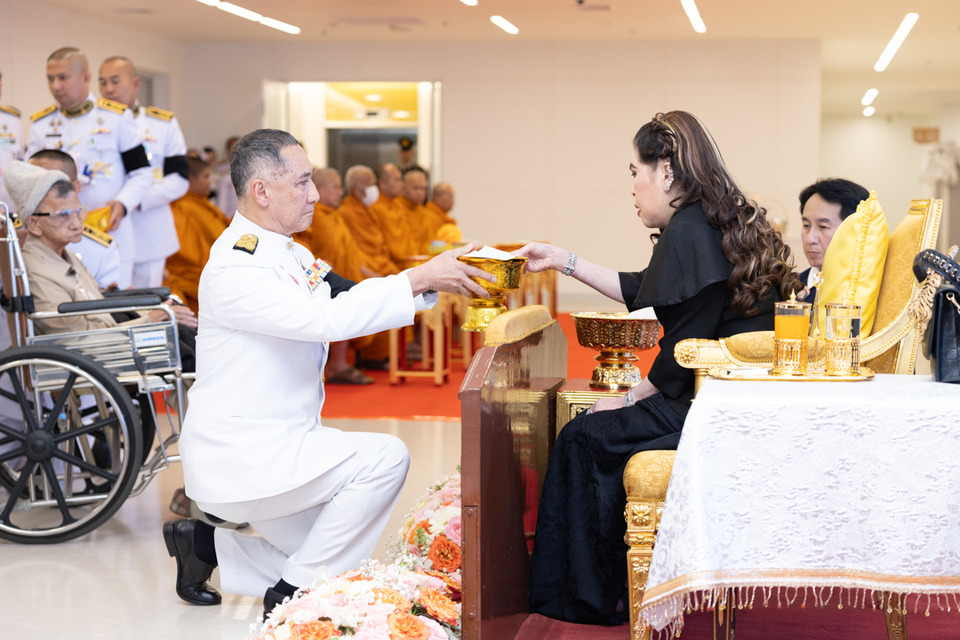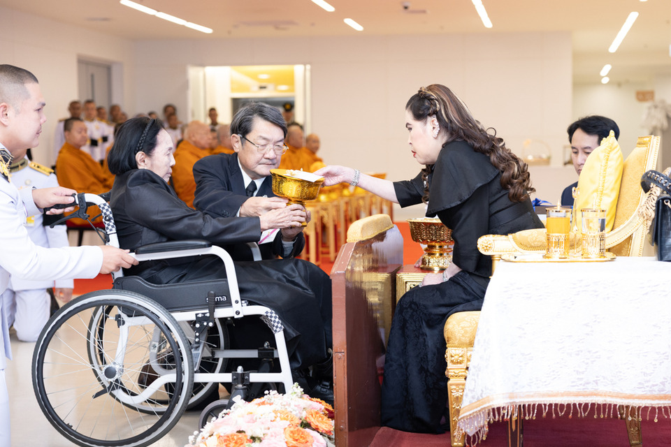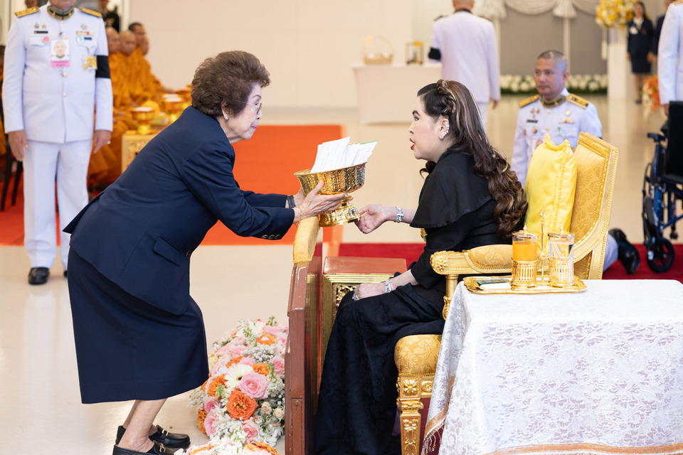 เมื่อวันที่ 18 กุมภาพันธ์ 2569 เวลา 13.38 น. ศาสตราจารย์ ดร.สมเด็จพระเจ้าน้องนางเธอ เจ้าฟ้าจุฬาภรณวลัยลักษณ์ อัครราชกุมารี กรมพระศรีสวางควัฒน วรขัตติยราชนารี เสด็จออก ณ ชั้น 6 อาคารกรมพระศรีสวางควัฒน โรงพยาบาลจุฬาภรณ์ พระราชทานพระวโรกาสให้ คุณหญิงจรัสศรี ทีปิรัช รองประธานสถาบันวิจัยจุฬาภรณ์ ฝ่ายบริหาร และผู้อำนวยการสำนักองค์ประธาน นำคณะผู้มีจิตศรัทธาเข้าเฝ้าถวายเงินโดยเสด็จพระกุศลสมทบ “กองทุนหทัยทิพย์” ภายใต้มูลนิธิจุฬาภรณ์ ซึ่งมีผู้แทนจากองค์กรหลายภาคส่วนร่วมทูลเกล้าฯ ถวายเงินสมทบกองทุนฯ พร้อมรับพระราชทานของที่ระลึกในครั้งนี้