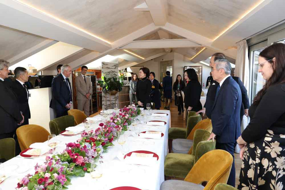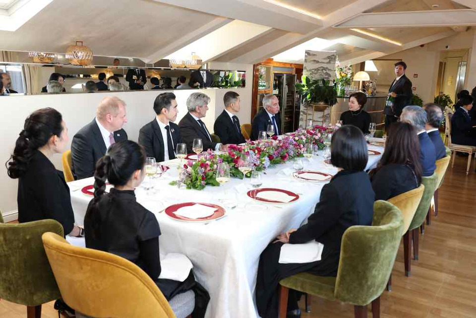 ต่อจากนั้น ทรงพระดำเนินไปยังห้องอาหารอัลตาริว่า โรงแรมปาลาซโซ เวเนเซีย เมืองโคโม โอกาสนี้ นายลุก ตาร์ดิฟ ประธานสหพันธ์ฮอกกี้น้ำแข็งนานาชาติ ขอพระราชทานพระราชานุญาตถวายเลี้ยงพระกระยาหารกลางวัน ทั้งนี้ สหพันธ์ฮอกกี้น้ำแข็งนานาชาติ ได้กราบบังคมทูลเชิญเสด็จพระราชดำเนินไปทรงร่วมทอดพระเนตรการแข่งขันฮอกกี้น้ำแข็งรอบชิงเหรียญรางวัลในมหกรรมการแข่งขันกีฬาโอลิมปิกฤดูหนาว 2026 ณ เมืองมิลาน สาธารณรัฐอิตาลี ด้วยทรงดำรงตำแหน่งทูตส่งเสริมกีฬาฮอกกี้น้ำแข็งประเภทหญิงของสหพันธ์ฯ