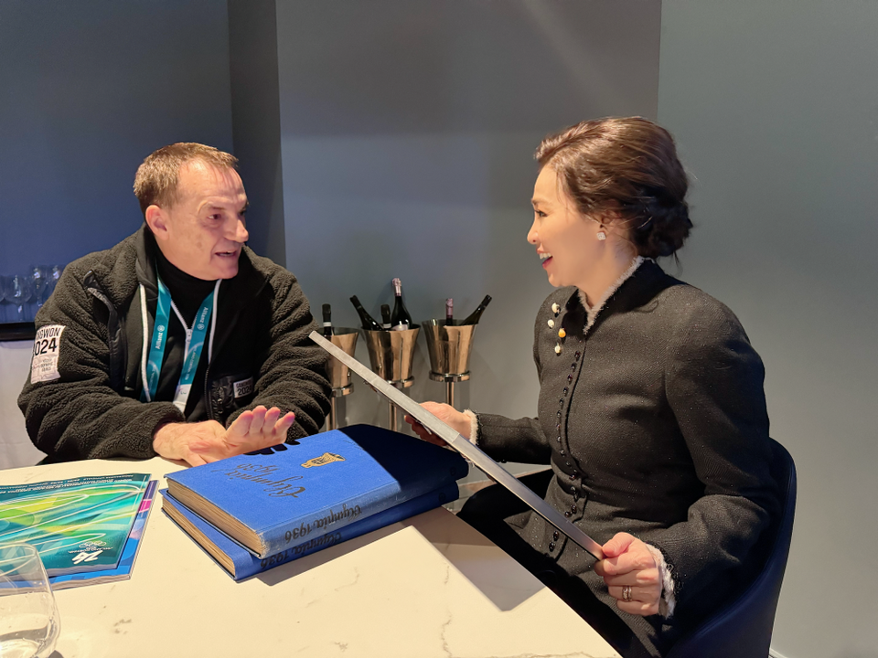 เมื่อรถยนต์พระที่นั่งถึงยังสนามแข็งขันฮอกกี้น้ำแข็งฯ นายลุก ตาร์ดิฟ ประธานสหพันธ์ฮอกกี้น้ำแข็งนานาชาติ , คุณหญิงปัทมา ลีสวัสดิ์ตระกูล กรรมการโอลิมปิกสากล พร้อมด้วย นายสมศักดิ์ ลีสวัสดิ์ตระกูล คู่สมรสฯ เฝ้าทูลละอองธุลีพระบาทรับเสด็จ