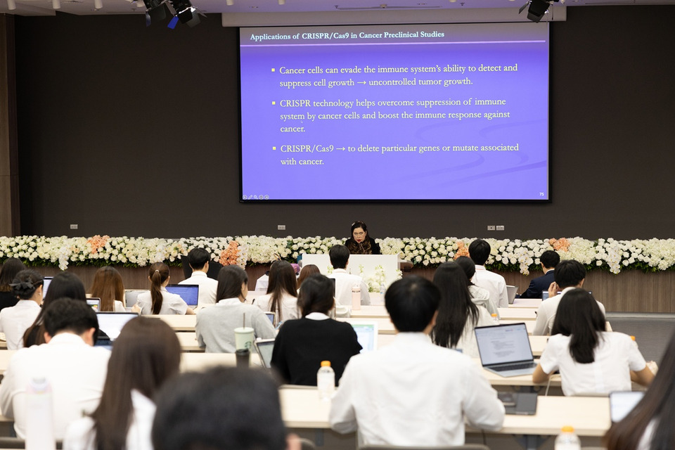 สำหรับครั้งนี้ ทรงบรรยายถึงการใช้เทคโนโลยี CRISPR/Cas9(คริสเปอร์-แคสไนน์) ซึ่งเป็นเทคโนโลยีตัดต่อยีนในการรักษาโรคมะเร็ง ซึ่งเป็นความหวังใหม่ในการรักษาผู้ป่วยมะเร็งที่มีประสิทธิภาพและมีผลข้างเคียงต่ำ ทั้งนี้จากการวิจัย พบว่าการยับยั้งยีน หลายประเภท เช่น CD133 miR3064 สามารถทำให้เซลล์มะเร็งลดการเจริญเติบโตและลดการแพร่กระจายได้จริง รวมทั้งอาจเพิ่ม อัตราการตอบสนองต่อการรักษาด้วยยาเคมีบำบัดด้วย ทั้งนี้ได้มีการนำเทคโนโลยีนี้มาใช้ในการรักษาโรคเลือดบางชนิดที่เป็นความผิดปกติทางพันธุกรรม โดยได้รับรับรองจากองค์การอาหารและยาในยุโรปและอเมริกา นอกจากนี้อาจนำไปใช้ในการตัดแต่งพันธุกรรมของ T-cell ที่เรียกว่า CAR-T cell therapy เพื่อรักษามะเร็งเม็ดเลือดขาวบางชนิดได้ด้วย ในส่วนกลไกการกระตุ้นภูมิคุ้มกันโดยการตัดต่อพันธุกรรมของ T-cells เพื่อรักษามะเร็งชนิดอื่นๆ เช่นมะเร็งปอดหรือมะเร็งกระดูก ยังอยู่ในกระบวนการวิจัยทางคลินิกเช่นกัน แต่ถึงกระนั้นก็ยังมีความท้าทายอีกหลายประการ ซึ่งความรู้ระดับยีนและ ชีวโมเลกุลของโรคมะเร็ง จะช่วยทำให้ เกิดความเข้าใจ กลไกการเกิดโรคและการรักษาโรคที่ถูกต้อง นำไปสู่การรักษามะเร็งอย่างมีเป้าหมายและเป็นการรักษาเฉพาะบุคคลได้ต่อไปในอนาคต