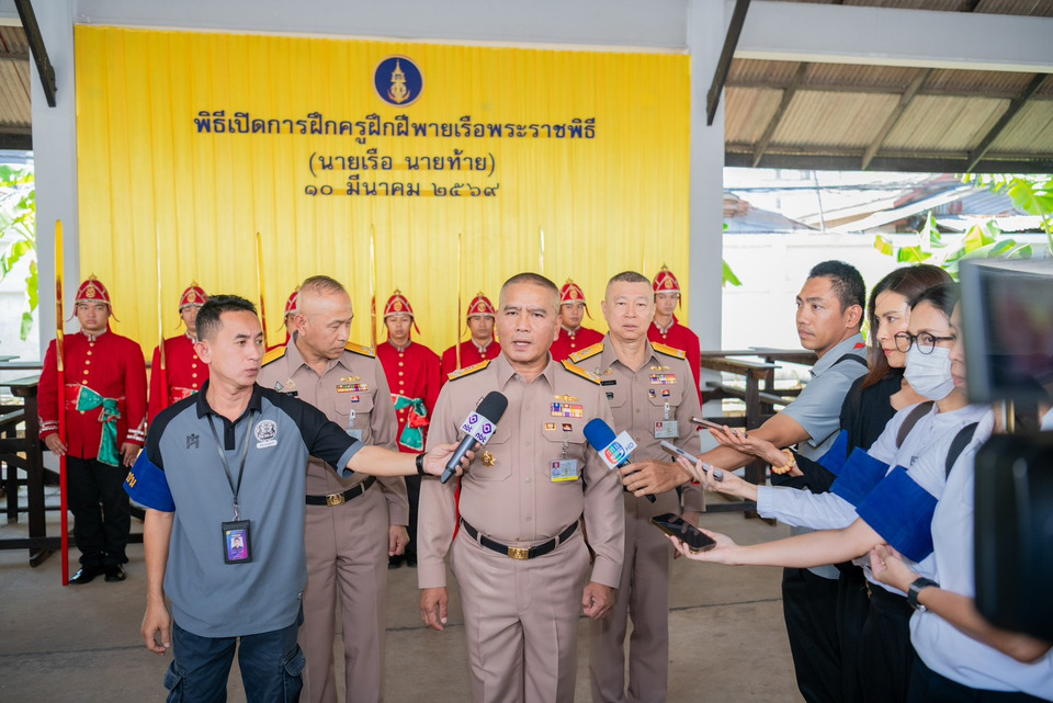 “ผบ.ทร.” เปิดฝึก “ครูฝึก” ฝีพายเรือพระราชพิธี เห่เรือ “ในหลวง”เสด็จฯถวายผ้าพระกฐิน-ฉลองพระชนมายุ 4 รอบ พระราชินี “ 6 พ.ย.69 เตรียมความพร้อมจัดขบวนพยุหยาตราทางชลมารค ใช้ เรือพระราชพิธี 52 ลำ ใช้ นายเรือ-นายท้าย 162 นาย ฝีพาย รวม 2,200 นาย จัดขบวนเรือเป็น 5 ริ้ว ยาว 1,200 เมตร กว้าง 90 เมตร พร้อม เรือริ้ว 3 สาย : กลาง-ใน-นอก