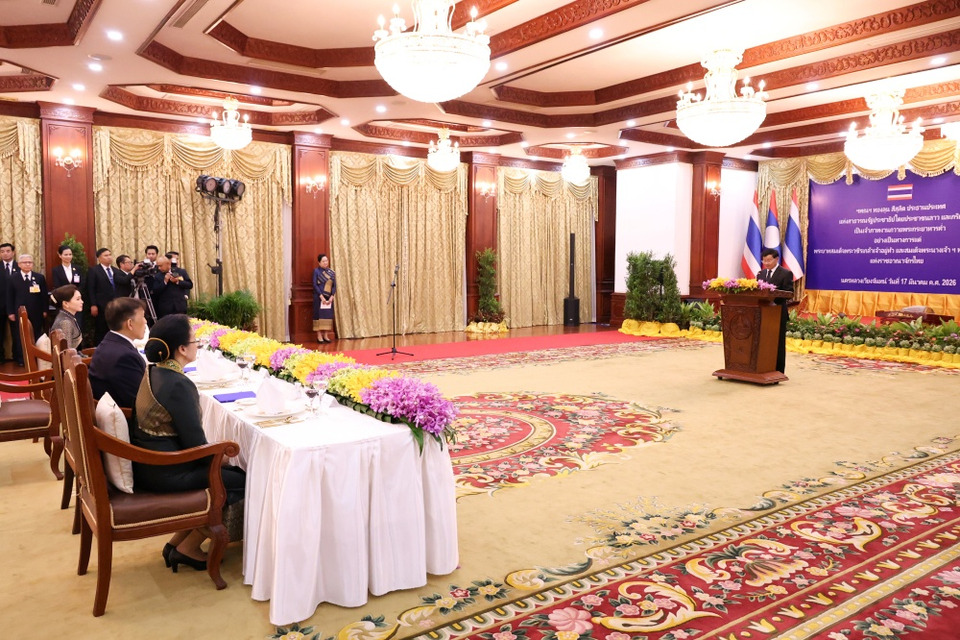 เสร็จแล้ว พระบาทสมเด็จพระเจ้าอยู่หัว และสมเด็จพระนางเจ้า ฯ พระบรมราชินี เสด็จพระราชดำเนินพร้อมด้วย ประธานประเทศ และภริยา ไปยังห้องถวายพระกระยาหารค่ำอย่างเป็นทางการ โดยมีแขกผู้มีเกียรติทั้งฝ่ายลาว และฝ่ายไทย เข้าร่วมในการถวายพระกระยาหารค่ำอย่างเป็นทางการ