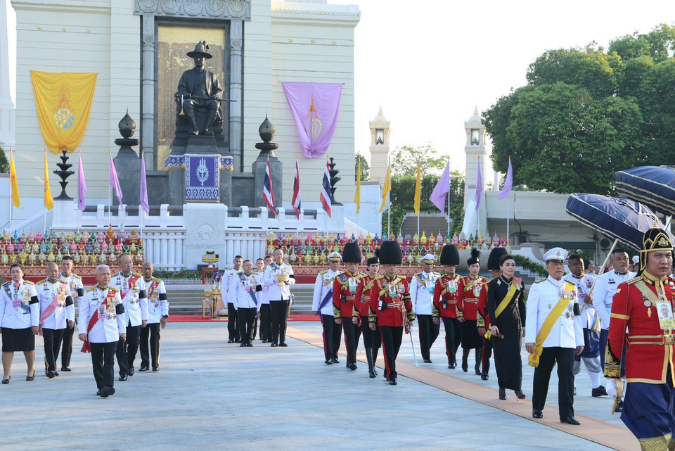 วันนี้ (6 เมษายน 2569) เวลา 17.29 น. พระบาทสมเด็จพระเจ้าอยู่หัว และสมเด็จพระนางเจ้า ฯ พระบรมราชินี เสด็จพระราชดำเนินไปวันพระบาทสมเด็จพระพุทธยอดฟ้าจุฬาโลกมหาราช และวันที่ระลึกมหาจักรีบรมราชวงศ์ พุทธศักราช 2569 ณ ปฐมบรมราชานุสรณ์ สะพานพระพุทธยอดฟ้า และเสด็จพระราชดำเนินไปทรงนมัสการพระพุทธมหามณีรัตนปฏิมากร กับทรงกราบถวายบังคมพระบรมรูปสมเด็จพระบูรพมหากษัตริยาธิราช ณ วัดพระศรีรัตนศาสดาราม และปราสาทพระเทพบิดร พระบรมมหาราชวัง