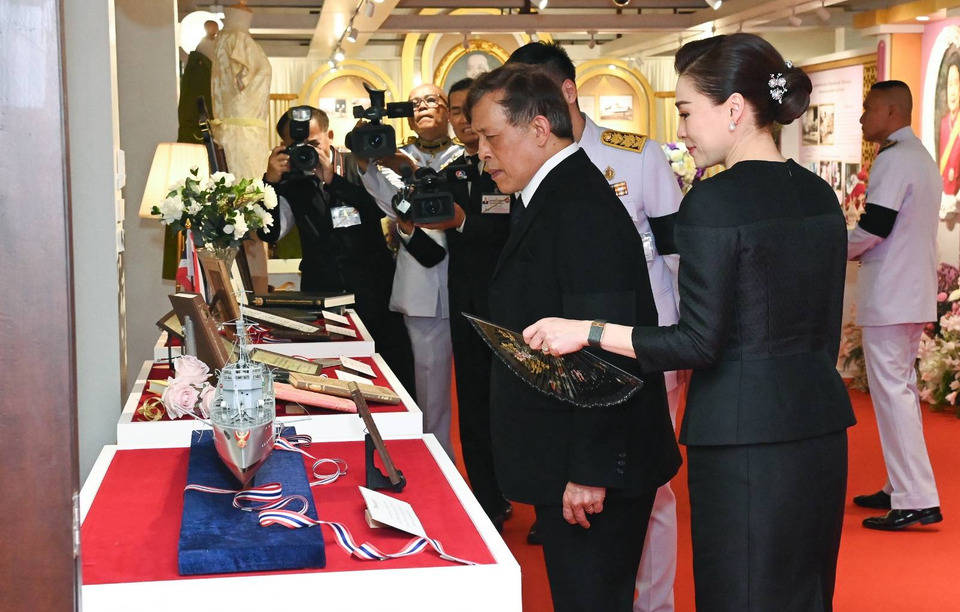ต่อมาเสด็จฯ ถึงโถงภายในอาคารลุมพินีสถาน ทอดพระเนตรนิทรรศการพระราชประวัติ และพระราชกรณียกิจ พระบาทสมเด็จ