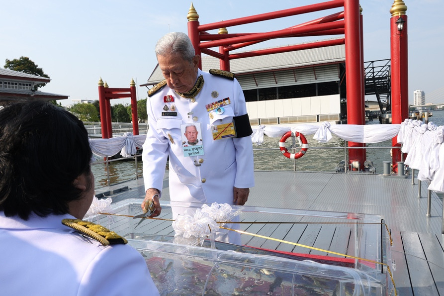 และประพรมน้ำพระพุทธมนต์ที่ตู้ปลา ตัดแถบแพรตู้ปลา ปล่อยพันธุ์ปลาน้ำจืด จำนวน 490,000 ตัว ซึ่งกรมประมงน้อมเกล้าน้อมกระหม่อมถวาย ประกอบด้วย ปลาตะเพียนขาว ปลาตะเพียนทอง ปลายี่สกไทย ปลาแก้มช้ำ ปลาสร้อยขาว ปลากระแห ปลาโพง ปลาเทพา และปลาชะโอน ลงแม่น้ำเจ้าพระยา เพื่อให้เจริญเติบโตเพาะขยายพันธุ์ตามธรรมชาติและรักษาความสมดุลตามระบบนิเวศน์ ต่อไป