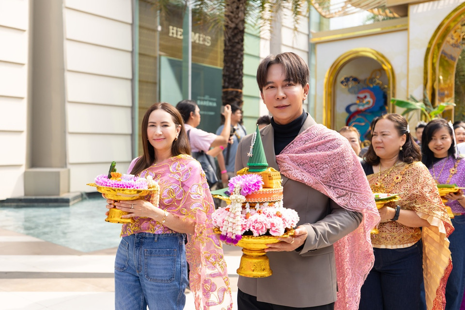ไฮไลท์สำคัญที่สร้างรอยยิ้มและสีสันให้ผู้ร่วมงาน คือ ขบวนขันหมากสุดสร้างสรรค์ “ห่มสไบ ใส่ยีนส์” บริเวณหน้าพาร์ค พารากอน ที่เติมเต็มความสนุกแบบร่วมสมัยให้กับพิธีสำคัญในวันแห่งความรัก พร้อมสร้างภาพความประทับใจให้กับคู่รักและผู้ร่วมงานที่มาร่วมบันทึกโมเมนต์ตลอดเส้นทาง โดยมี ดร.นรเทพ ชูพูล ผู้อำนวยการเขตปทุมวัน พร้อมด้วยผู้บริหารเขตปทุมวัน อาทิ ศุภพิชญาณ์ ชาวบางรัก, สุรี ใจกล้า ร่วมด้วยผู้บริหารศูนย์การค้าสยามพารากอน อาทิ นราทิพย์ รัตตประดิษฐ์ และธณพร ตันติยานนท์ และแขกผู้มีเกียรติร่วมเป็นสักขีพยานแห่งรัก