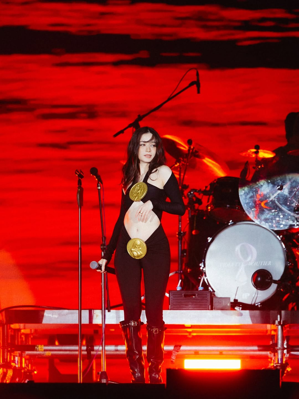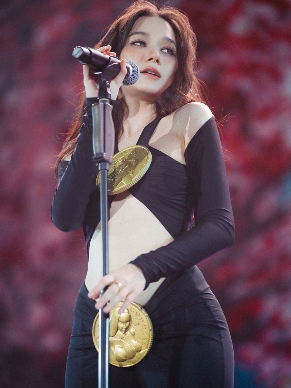 แต่สิ่งที่กลายเป็นกระแสฮือฮาไม่แพ้เสียงร้อง ก็คือ ชุดขึ้นโชว์ดีไซน์สุดมั่นสีดำ ทั้งรัดรูป-โชว์หน้าท้อง ที่เผยลุคเท่เฉียบและมั่นใจในแบบฉบับ “วี วิโอเลต” จนกลายเป็นประเด็นร้อนบนโลกออนไลน์ มีทั้งเสียงชื่นชมในความกล้าและสไตล์สุดยูนีก ขณะที่อีกด้านก็มีคอมเมนต์แซวสนั่นว่า “ชุดเหมือนคนท้องไหมคะ” หรือ “ตกใจเลยตอนแรกนึกว่าท้อง”