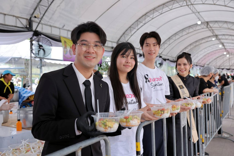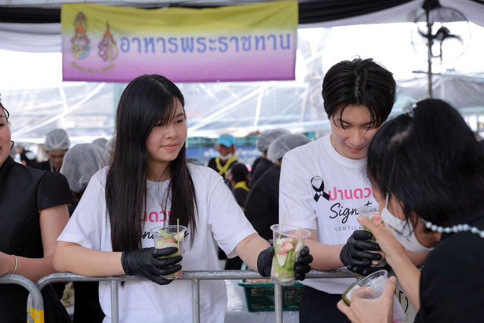 ร่วมด้วย 2 นักแสดงจากซีรัส์แนวตั้ง "ปานดวงใจSignature" ได้แก่ วายุ-วายุมันตรา และ คีธ-กรินทร์ ร่วมกันแจกอาหารพระราชทานให้กับประชาชนที่มาถวายความอาลัย #สมเด็จพระพันปีหลวง