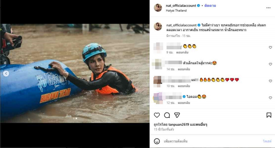 ยังส่งผลกระทบอย่างหนักสำหรับสถานการณ์น้ำท่วมที่ อ.หาดใหญ่ จ.สงขลา ล่าสุด แนท-เกศริน ชัยเฉลิมพล ลงพื้นที่หาดใหญ่ ช่วยเหลือพี่น้องประชาชนที่กำลังได้รับความเดือดร้อนจากอุทกภัย น้ำท่วมใหญ่ที่เกิดขึ้น