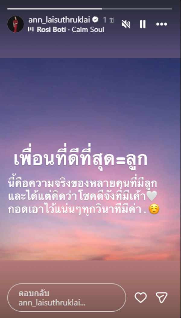 ล่าสุด "แอน อลิชา" โพสต์ข้อความผ่านอินสตาแกรมสตอรี่ @ann_laisuthruklai ระบุว่า...