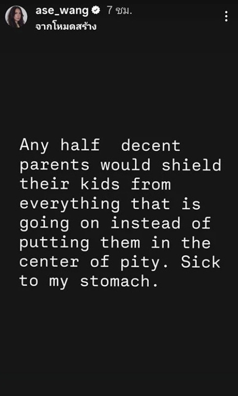 เรียกว่าระอุขึ้นเรื่อยๆ สำหรับดราม่าคอนเทนต์ ลูกๆโผเข้ามากอด "นานา ไรบีนา" หลังได้ประกันตัวชั่วคราว ล่าสุด "โอซา แวง" เพื่อนสนิทแก๊งนางฟ้า ได้ออกมาฟาดเป็นภาษาอังกฤษว่า"Any half decent parents would shield their kids from everything that is going on instead of putting them in the center of pity. Sick to my stomach."