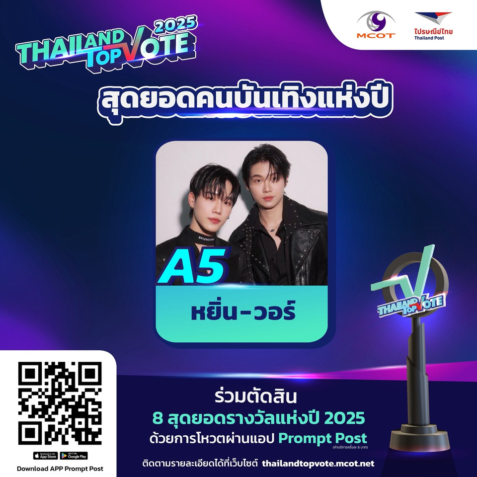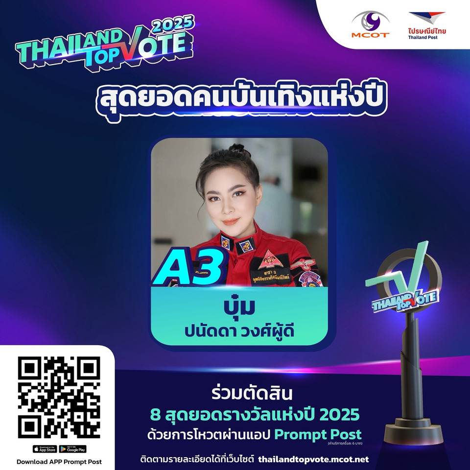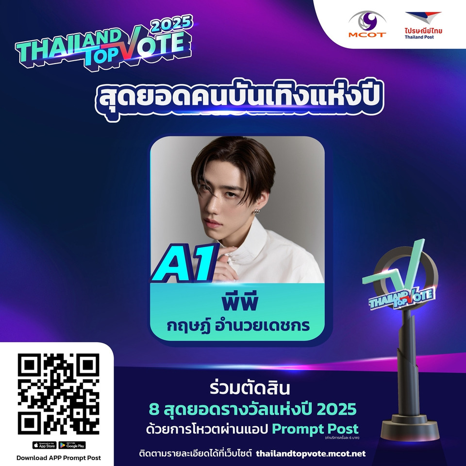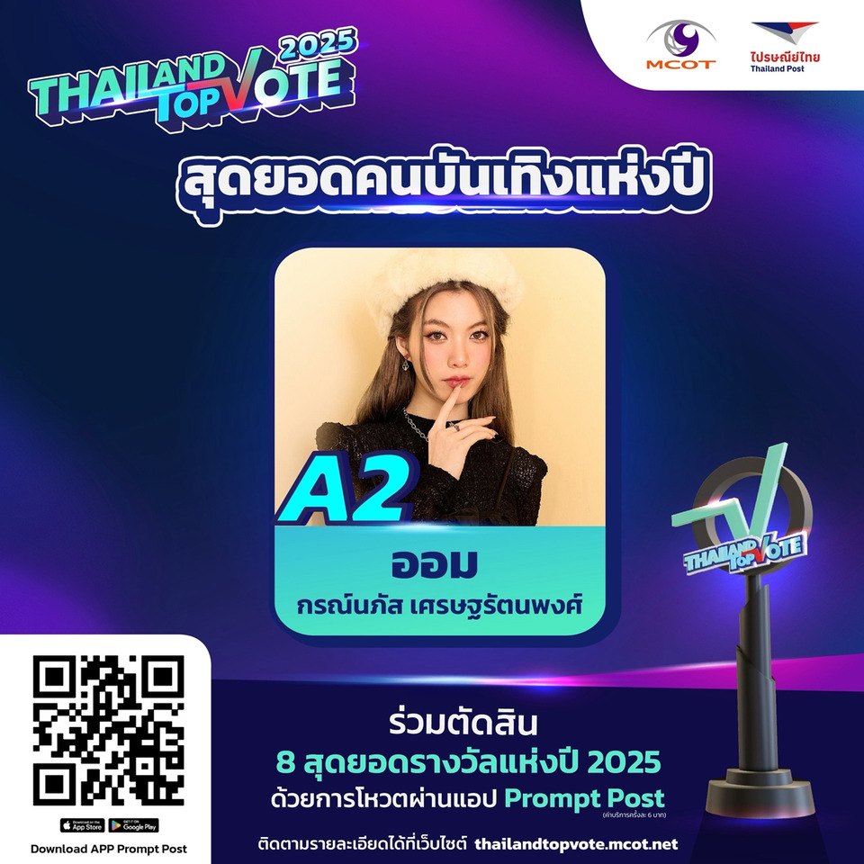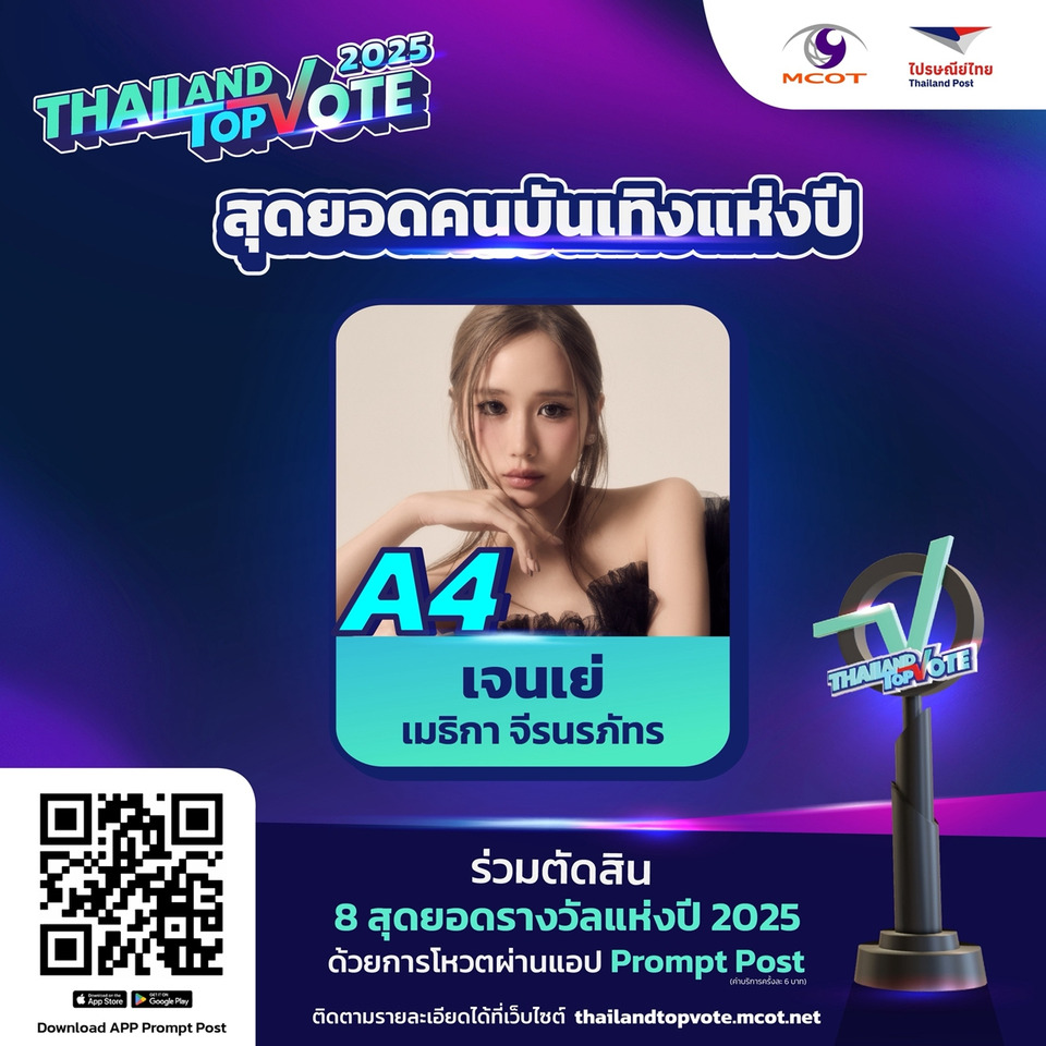 สามารถติดตามกติกาเพิ่มเติมและร่วมเป็นส่วนหนึ่งของรางวัล “Thailand Top Vote 2025” ได้ทาง https://thailandtopvote.mcot.net/ #ThailandTopVote2025 #MCOT #ช่อง9กด30 #ไปรษณีย์ไทย #PromptPost