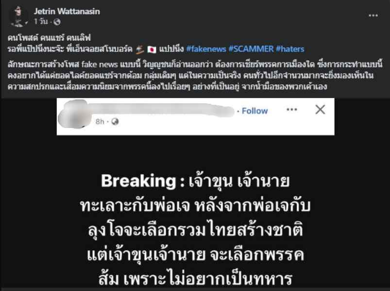 ลักษณะการสร้างโพส fake news แบบนี้ วิญญูชนก็อ่านออกว่า ต้องการเชียร์พรรคการเมืองใด ซึ่งการกระทำแบบนี้คงอยากได้แค่ยอดไลค์ยอดแชร์จากด้อม กลุ่มเดิมๆ แต่ในความเป็นจริง คนทั่วไปอีกจำนวนมากจะยิ่งมองเห็นในความสกปรกและเสื่อมความนิยมจากพรรคนี้ลงไปเรื่อยๆ อย่างที่เป็นอยู่ จากน้ำมือของพวกเค้าเอง
