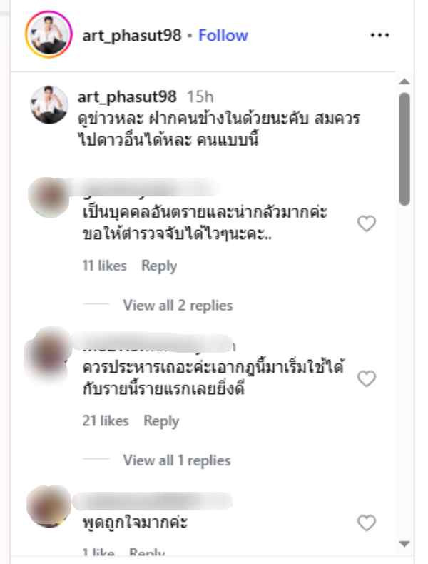 ล่าสุด "อาร์ต พศุตม์" โพสต์ข้อความถึงคดีดังกล่าวผ่านอินสตาแกรมส่วนตัว @art_phasut98 ระบุว่า...