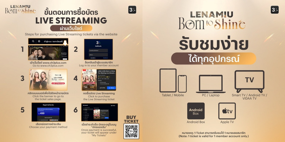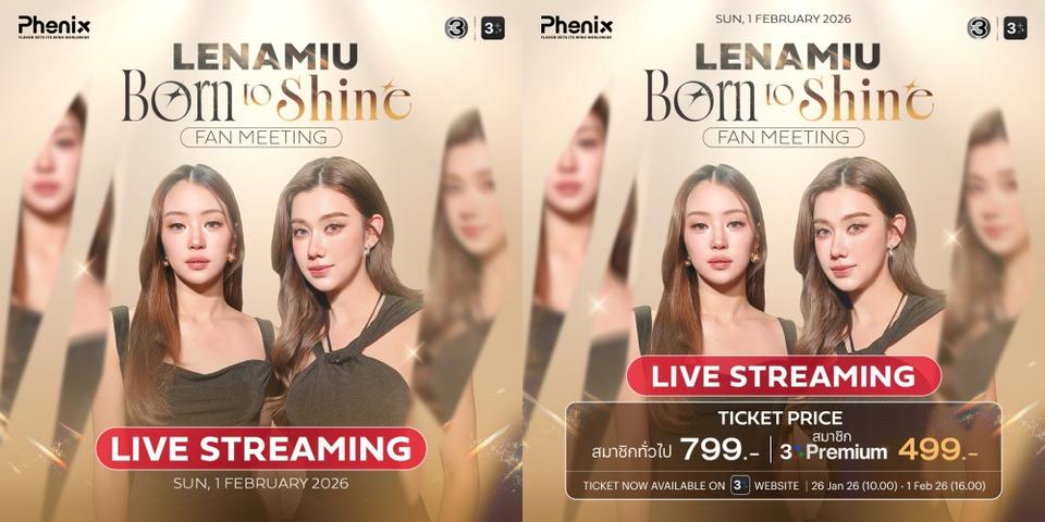 เตรียมตัวให้พร้อม แล้วมาร่วมเก็บทุกโมเมนต์สุดประทับใจไปพร้อมกันใน “LENAMIU Born to Shine Fan Meeting” เปิดให้ชม Live Streaming ในวันที่ 1 กุมภาพันธ์ 2569 เวลา 15.00 น. พร้อมคำบรรยายภาษาอังกฤษแบบสรุปตลอดการไลฟ์