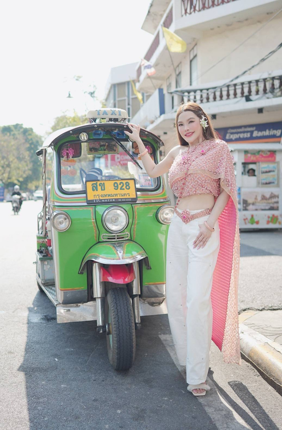 ด้วยกระแสเพลง Bangkok City ของนักร้องสาว กระแต อาร์สยาม สาวสวยดีกรี ดร. ดีกรี นักบิน ก็ไม่พลาดที่จะอินไปกับเพลงนี้ หลังจากเคลียร์คิวจากการเรียน สาวปิ๊งปิ๊ง ก็สลัดชุดนักบิน มาสวมสไบสีชมพูหวานแหวว ออร่าฉ่ำเว่อร์ เฉิดฉายบนถนนราชดำเนิน ด้านหลังเป็นวิวสวยๆ ของ วัดพระแก้ว & วัดอรุณฯ แลนด์มาร์คสุดปังของกรุงเทพมหานคร และรถตุ๊กๆ SOFT POWER สุดเจ๋งของไทยแลนด์ฟีเวอร์ที่กำลังมาแรงของจริง ชุดสไบคือดูดี ดูแพงทุกลุคนะจ้ะ!!!