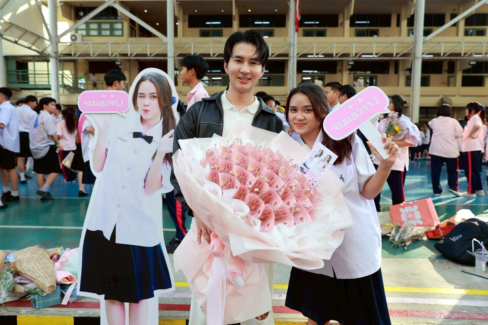 เพิ่งเรียนจบในระดับมัธยมปลายจากโรงเรียนสาธิตสวนสุนันทา สำหรับนักแสดงหน้าใหม่วัยใส พรีเมียร์-ศรัญญา วงศ์สุนทร โดยมีพระเอกหนุ่ม แสตมป์-พรวศิน เรืองนุกูล หอบช่อดอกไม้ไปเซอร์ไพร้สถึงโรงเรียน และให้คำอวยพรเกี่ยวกับการเรียนและงานแสดง ทำเอา พรีเมียร์ ถึงกับเป็นปลื้มอย่างที่สุด