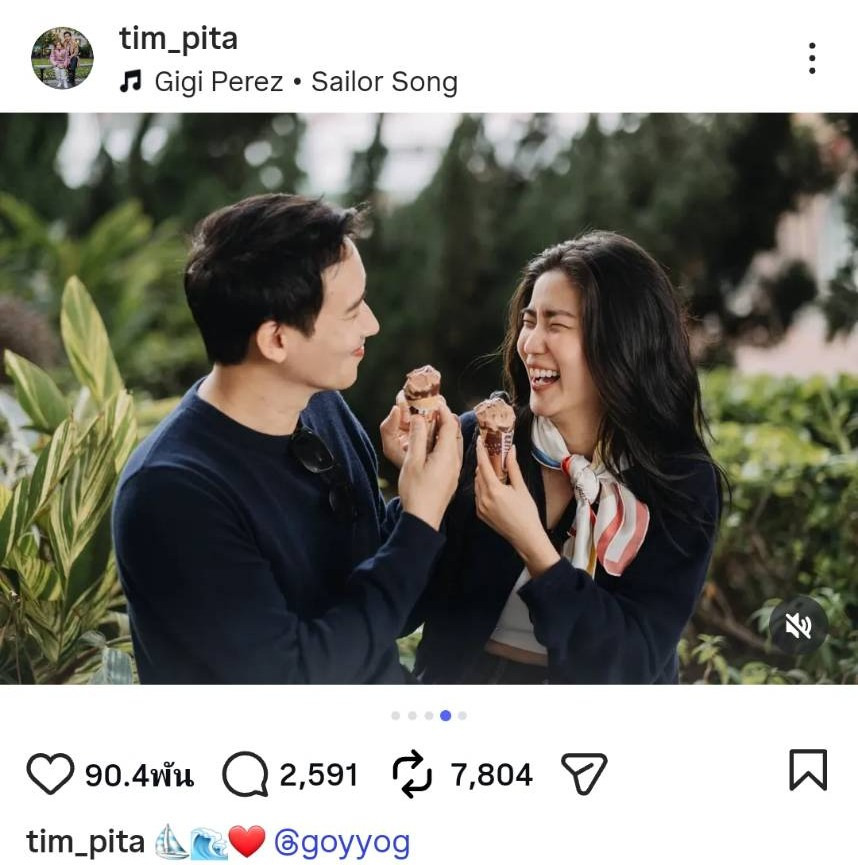 เมื่อวันที่ 21 กุมภาพันธ์ 2569 ภายหลังจากมีการเปิดเผยความสัมพันธ์อย่างเป็นทางการของ ทิม พิธา ลิ้มเจริญรัตน์ กับนักแสดงสาว ก้อย อรัชพร โภคินภากร ซึ่งกลายเป็นกระแสพูดถึงอย่างกว้างขวางบนโลกออนไลน์ ล่าสุดฝ่ายชายได้โพสต์ภาพคู่สุดหวานผ่านอินสตาแกรมส่วนตัวชื่อ “tim_pita” พร้อมแท็กถึงฝ่ายหญิง ทำเอาแฟนคลับเข้ามาแสดงความยินดีจำนวนมาก