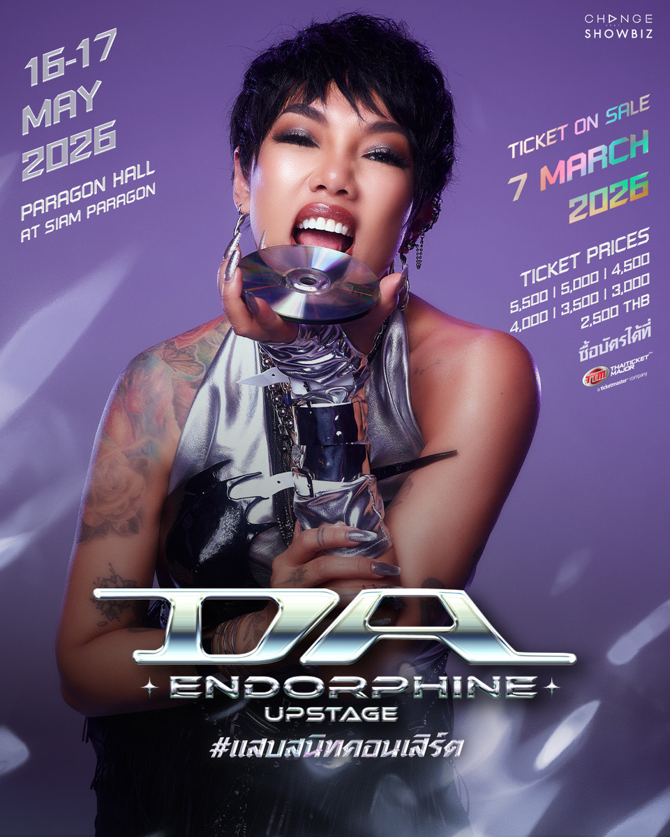ถ้าคุณเคยเติบโตมากับเสียงของ “ดา เอ็นโดรฟิน” มาปลุกปรากฏการณ์ความคิดถึงด้วยกัน อย่าปล่อยให้คำว่า “บัตรหมดแล้ว” กลายเป็นความเสียดายซ้ำสอง ใครที่ไม่อยากพลาดโมเมนต์ประวัติศาสตร์ เตรียมตั้งนาฬิกาปลุกเตือนไว้ให้ดี เปิดขายบัตรในวันที่ 7 มีนาคมนี้ เวลา 10.00 น. ที่ WWW.THAITICKETMAJOR.COM และทุกสาขา ระหว่างนี้ก็รีบนัดรวมตัวเพื่อนกันให้ครบแล้วมาเจอกันวันคอนเสิร์ต “DA ENDORPHINE UPSTAGE #แสบสนิทคอนเสิร์ต ” วันแสดง 16-17 พฤษภาคมนี้ ที่ PARAGON HALL (รอบวันเสาร์ 18.00 น. / รอบวันอาทิตย์ 17.00 น.) มาร้องเพลง “ดา เอ็นโดรฟิน” ให้สนุกสุดไปด้วยกัน