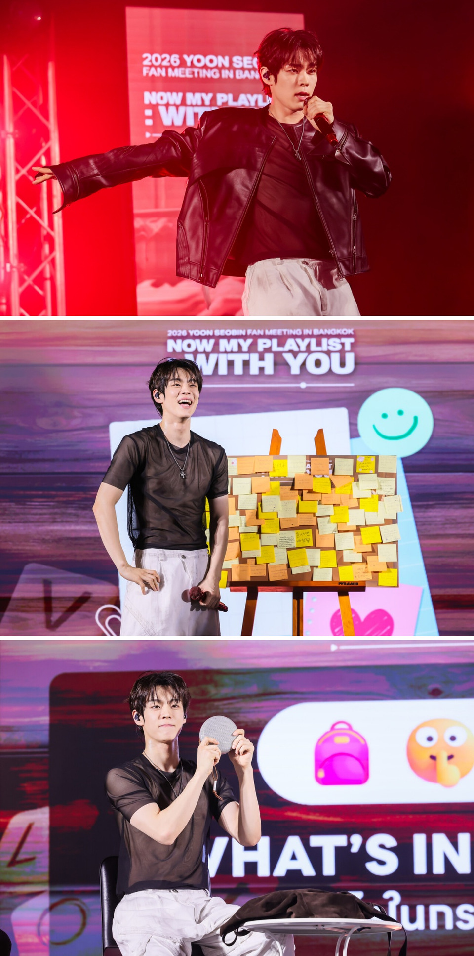 ก่อนที่จะเข้าสู่ช่วง “MESSAGE FROM MY PLAYLIST” ที่เปิดโอกาสให้แฟน ๆ เขียนคำถามลงบนโพสต์อิท ส่งตรงถึงศิลปินคนโปรด ต่อเนื่องด้วย “SEOBIN’s TMI” ที่เขาเปิดลิสต์เรื่องราวส่วนตัวแบบไม่มีกั๊ก ทั้งเพลย์ลิสต์ประจำวัน ไอเท็มคู่ใจในกระเป๋า และภาพความทรงจำที่อยากแบ่งปัน