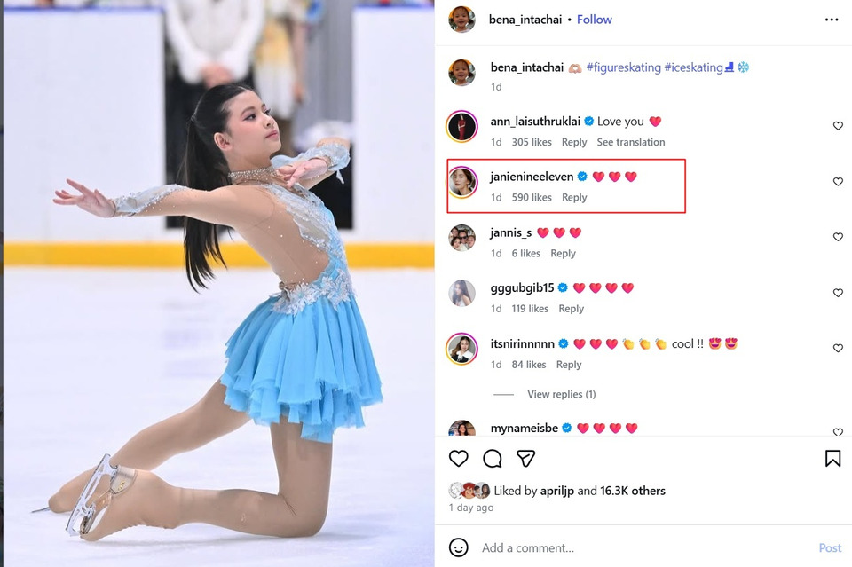งานนี้ FC เข้ามากดอิโมจี หัวใจสีแดงให้รัวๆๆ รวมถึง "น้าเจี๊ยบ" เจนี่ เทียนโพธิ์สุวรรณ มาคอมเมนต์รูปหัวใจสีแดงสามดวงให้หลานสาว