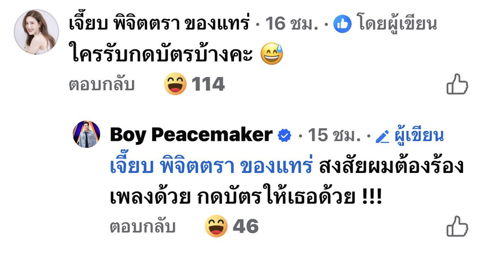 ภรรยาศิลปินยังต้องลุ้น! 'เจี๊ยบ พิจิตตรา' โผล่เมนต์ใต้โพสต์ 'บอย อนุวัฒน์' โปรโมทคอนเสิร์ต 23 ปี PEACEMAKER THE RE:PEACE CONCERT ถามหาทีมช่วยกดบัตร แฟนๆแห่แซวสนั่น
