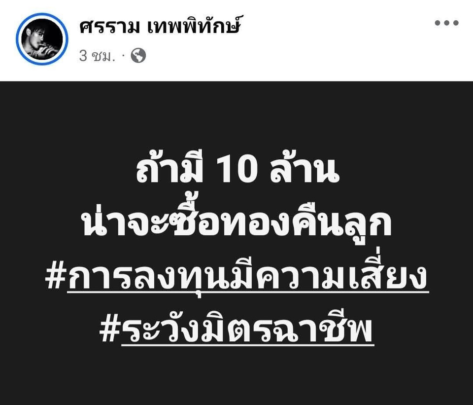 ซึ่งก่อนหน้านั้นพี่หนุ่มออกมาโพสต์ ว่า "ถ้ามี 10 ล้าน น่าจะซื้อทองคืนลูก"