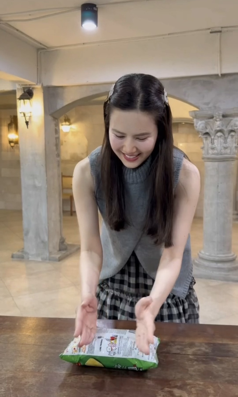 เมื่อ “เจี๊ยบ” ศรีภรรยาคนสวย ขออาสาโชว์สกิลแกะขนมให้เอง งานนี้แทนที่จะฉีกแบบธรรมดา กลับใช้วิธีสุดพีค ด้วยการวางถุงขนมบนโต๊ะ แล้วพยายามใช้มือ “ฟัน” ถุงขนมให้เปิดออก ทำเอา “บอย” ถึงกับยืนงง พร้อมอาการอึ้งปนขำกับวิธีการสุดครีเอทีฟที่ไม่เหมือนใคร
