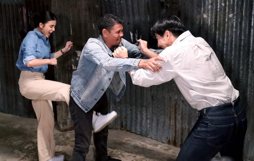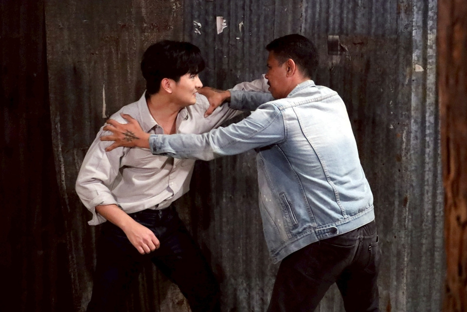 โดยสองหนุ่มซ้อมคิวบู๊อยู่พักใหญ่ พอรู้คิวกันดีแล้ว ผู้กำกับฯ ก็สั่งเดินกล้อง ถ่ายทำ ซึ่งจะต้องเก็บฉากคิวบู๊ทีละคัท จากนั้นถึงจะเป็นคัทรวม ที่ทั้ง ภูริช และ ดวงอัปสร ต้องวิ่งหนีคนร้าย