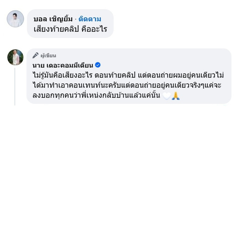 แต่ที่ทำเอาโซเชียลขนลุก ในช่วงท้ายของคลิปกลับมีเสียงปริศนาดังแทรกขึ้นมา จนทำให้ชาวเน็ตจำนวนมากตั้งข้อสังเกตและเข้าไปแสดงความคิดเห็นกันอย่างล้นหลาม อาทิ “ได้ยินเสียงอะไรบางอย่างไหม?” รวมถึง “บอล เชิญยิ้ม” ที่เข้ามาคอมเมนต์ถามตรงๆ ว่า “เสียงท้ายคลิป คืออะไร”