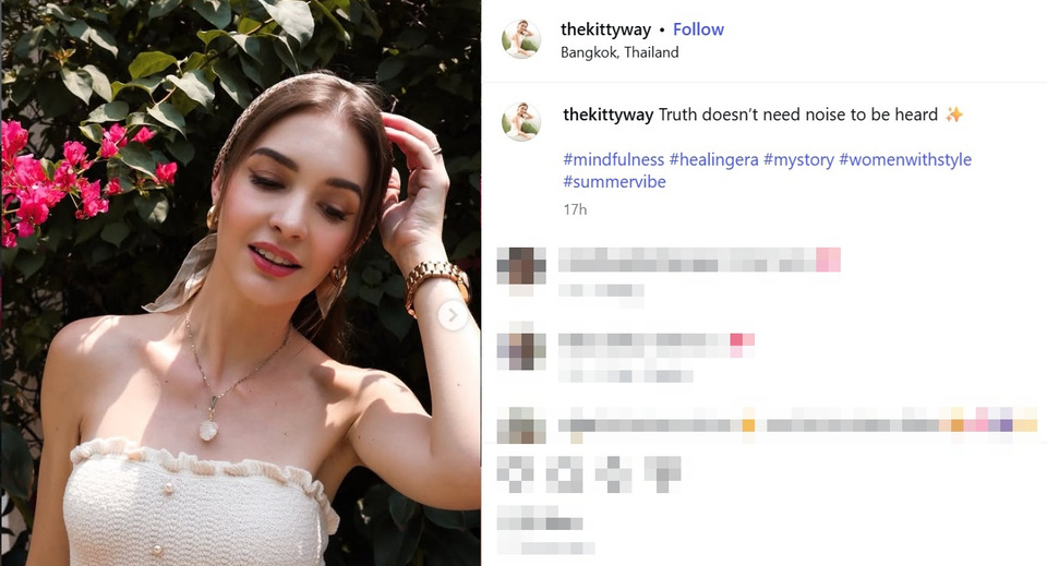 ล่าสุด "คิตตี้ คริสติน่า" ได้ออกมาเคลื่อนไหวผ่านโลกโซเชียลว่า Truth doesn’t need noise to be heard “ความจริงไม่จำเป็นต้องเสียงดังให้ใครได้ยิน” #mindfulness #healingera #mystory #womenwithstyle #summervibe
