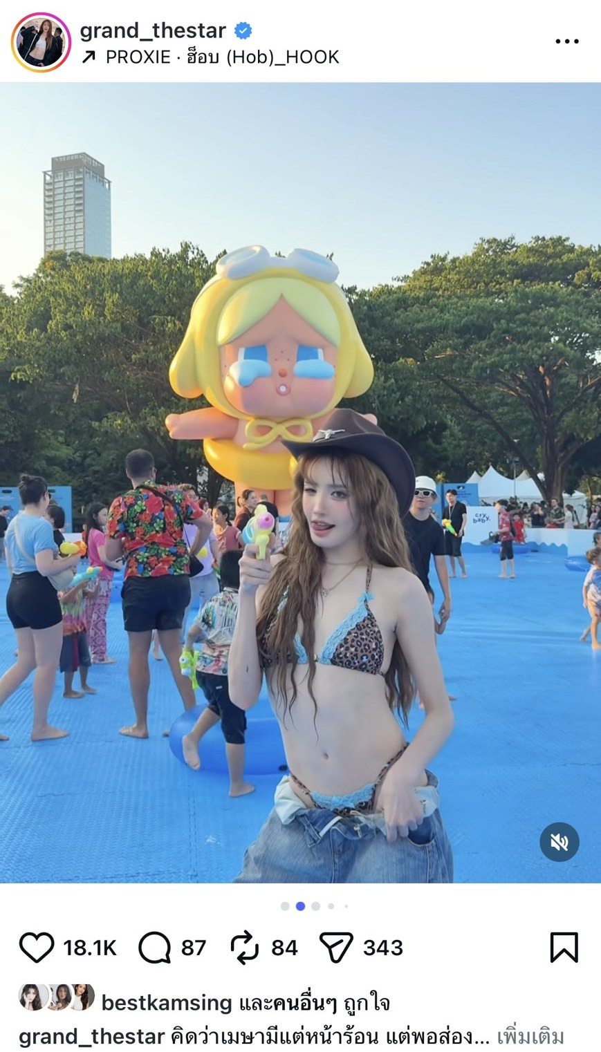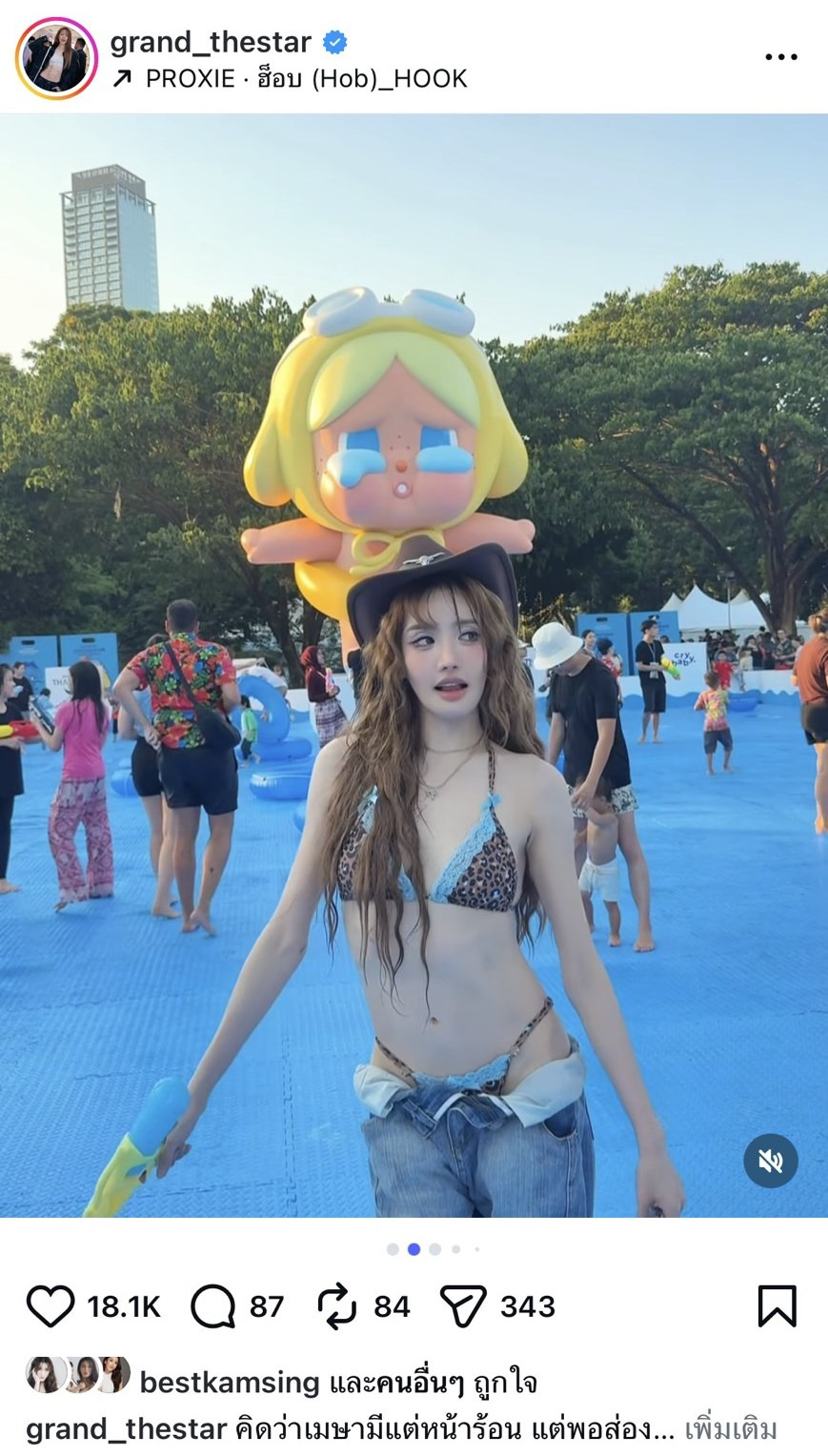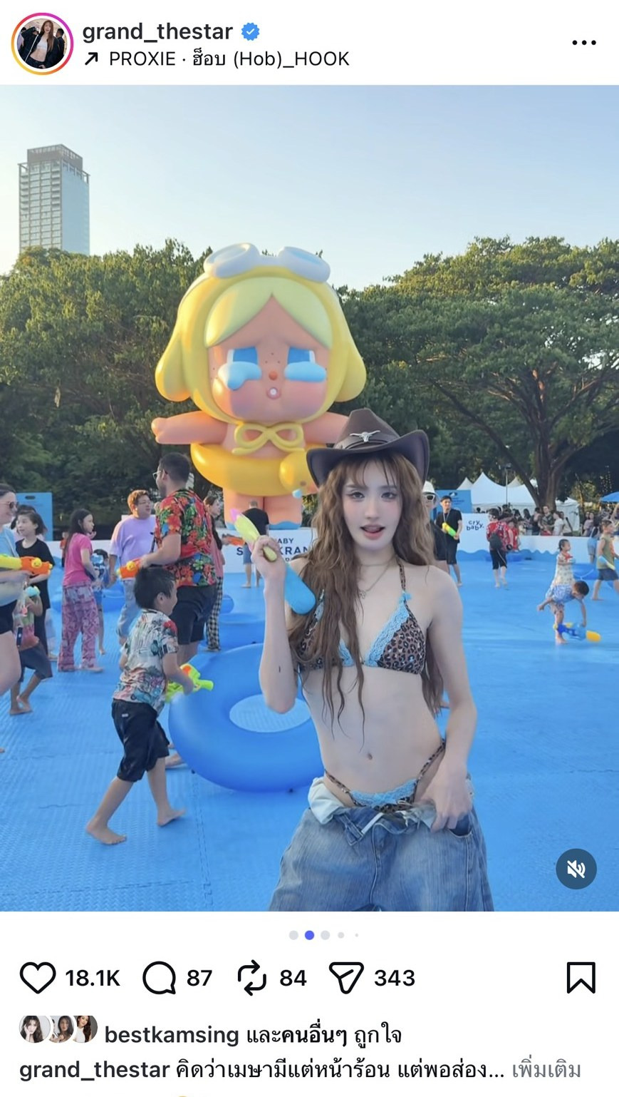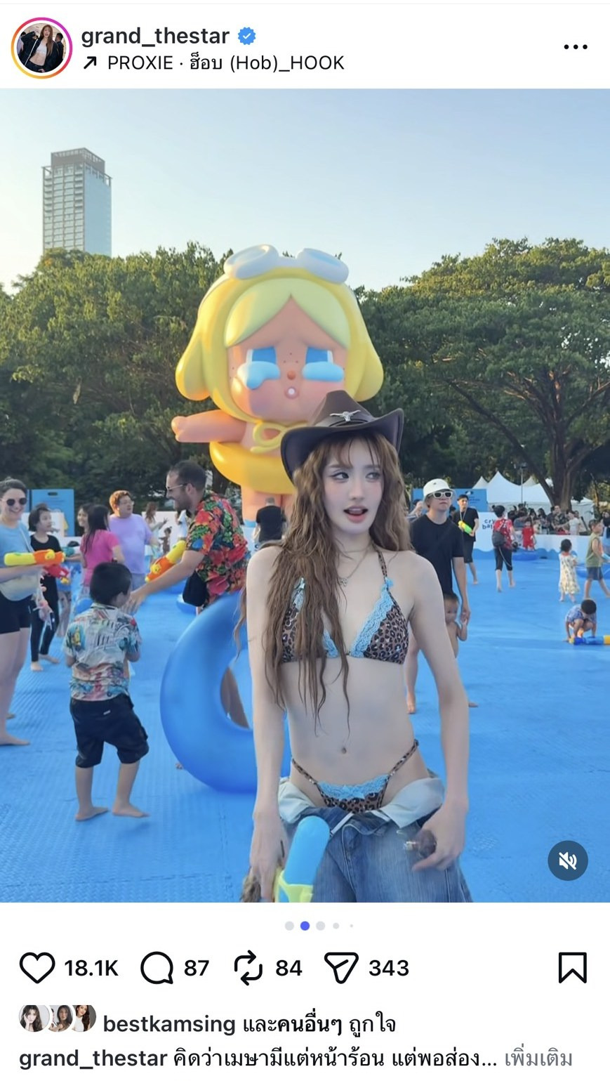 “แกรนด์ เดอะสตาร์” ปล่อยลุคแซ่บรับสงกรานต์ในชุดบิกินี-หมวกคาวบอย ทำโซเชียลลุกเป็นไฟ ยอดไลก์ทะลุหมื่น แฟนคลับแห่คอมเมนต์สนั่น