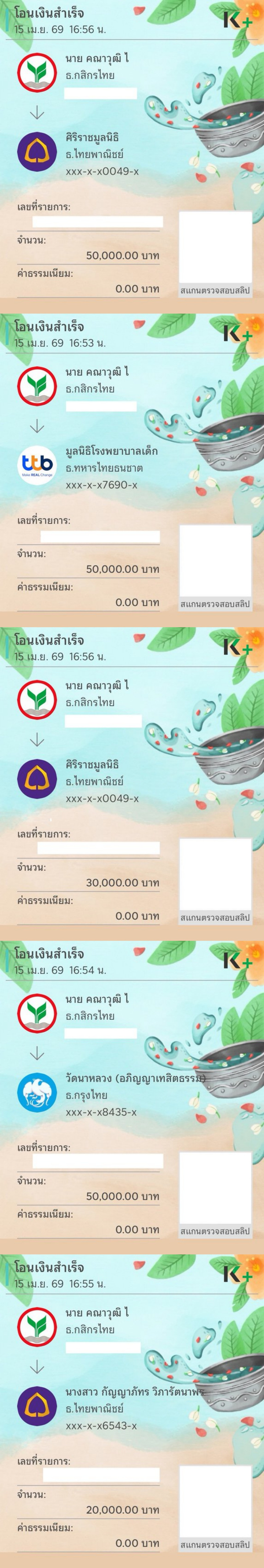 - ศิริราชมูลนิธิ จำนวน 80,000 บาท