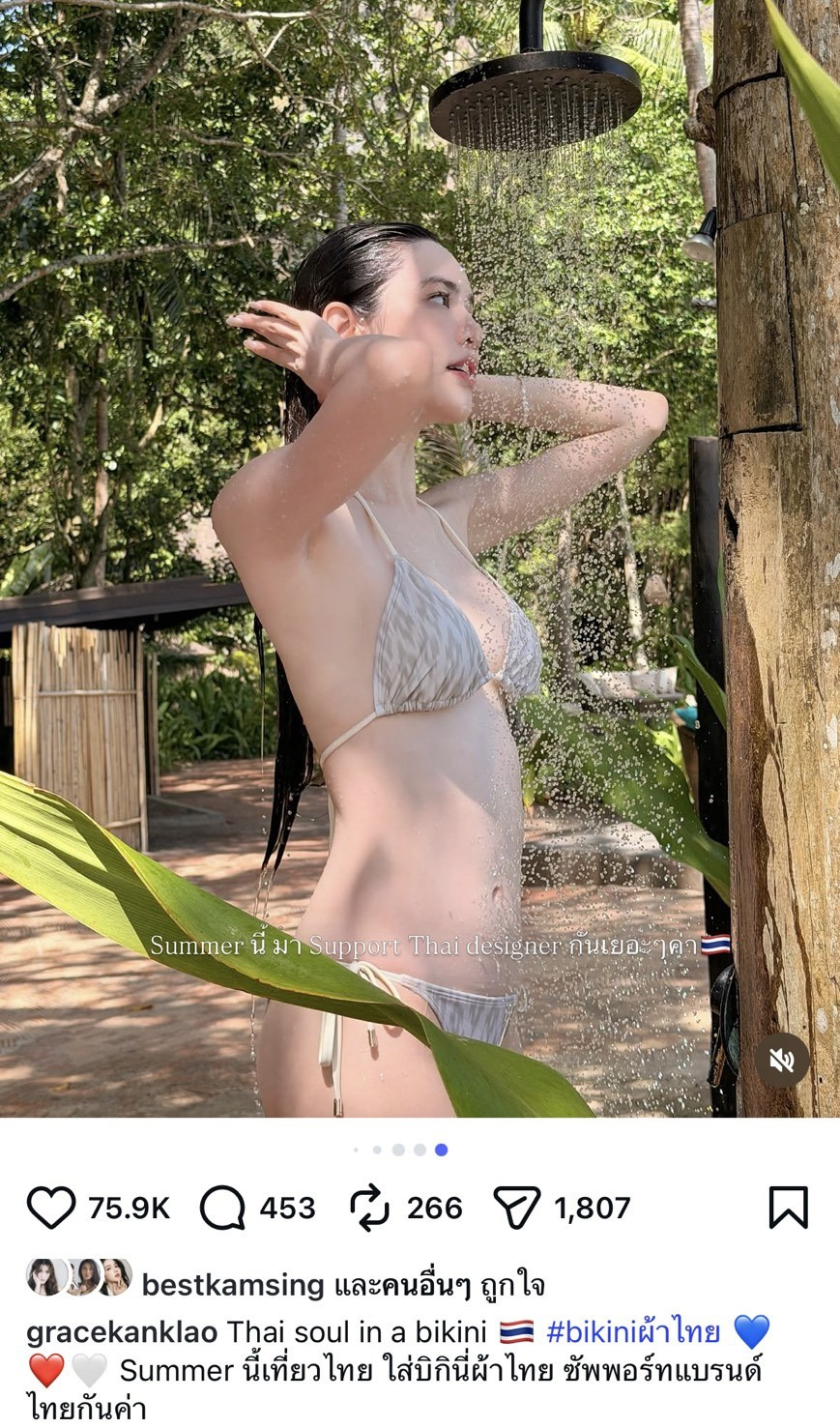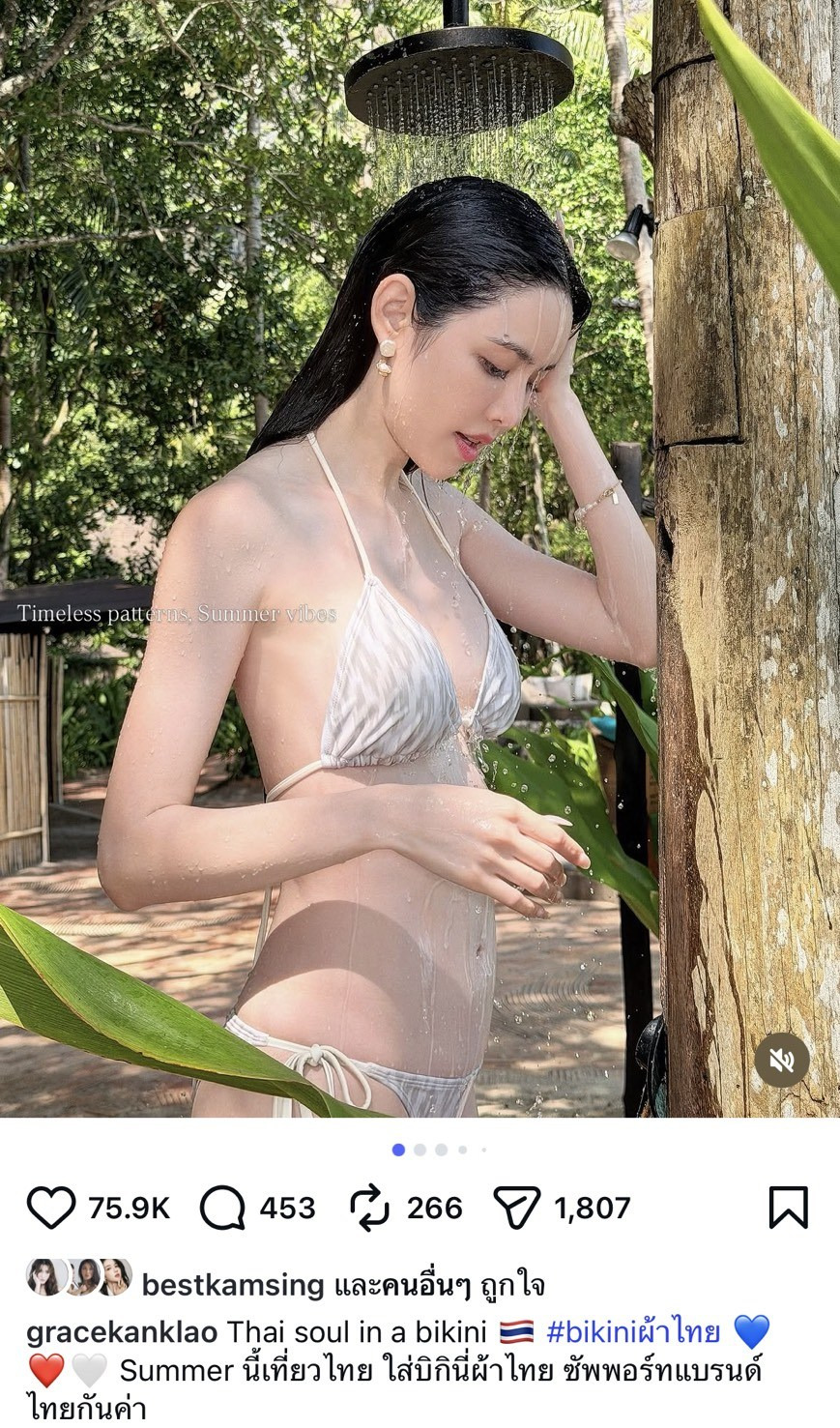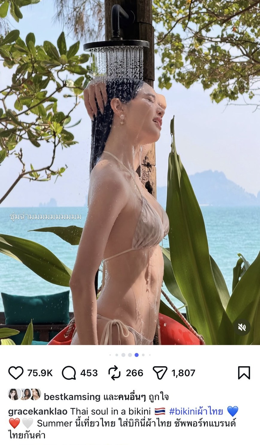 #เกรซกาญจน์เกล้า #GraceKanklao #บิกินีผ้าไทย #ชุดว่ายน้ำผ้าไทย #ผิวขาวออร่า #ขาวโอโม่ #ดาราไทย #ข่าวบันเทิง #ซัมเมอร์2569 #เที่ยวเมืองไทย #หุ่นดี #หุ่นสับ #แฟชั่นผ้าไทย #ไอจีไฟลุก #นางเอก #ผิวสวย #เกรซกาญจน์เกล้าบิกินี #ThaiDesigner #BikiniThai #SummerVibes