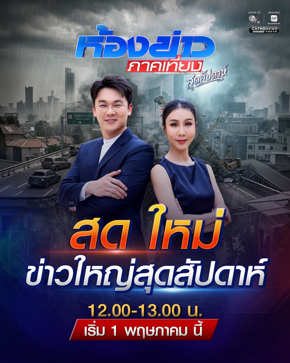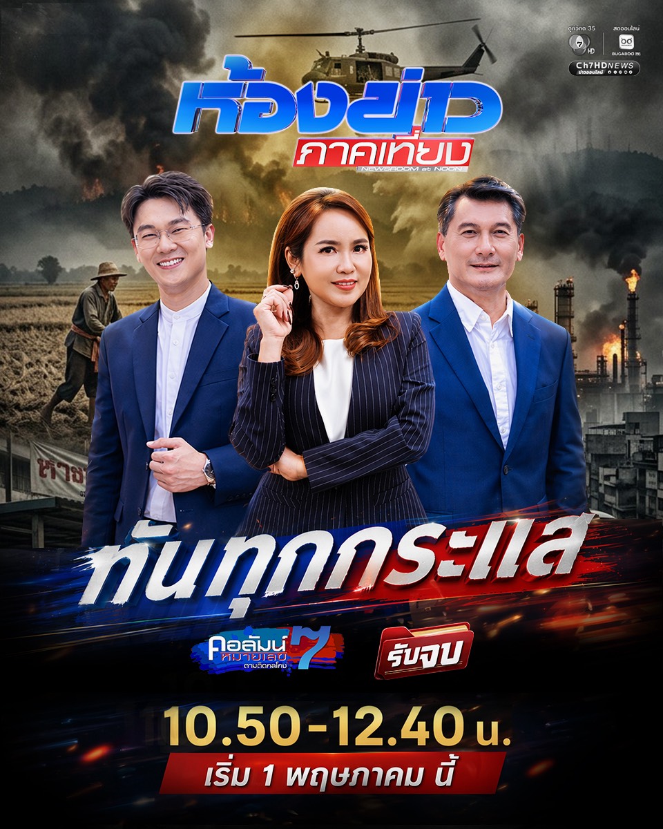 เดินเกมรุกต่อเนื่อง ช่อง 7HD ยกระดับการนำเสนอข่าวสารให้ครอบคลุมทุกมิติสังคม ประเดิมด้วย “ห้องข่าวภาคเที่ยง” ปรับเวลาใหม่ ขยายเวลาเต็มอิ่มกว่าเดิม สด ใหม่ ทันทุกกระแส ทุกวันจันทร์–ศุกร์ ตั้งแต่เวลา 10.50–12.40 น. เกือบ 2 ชั่วโมงเต็ม นำทีมโดยคู่หูผู้ประกาศมืออาชีพ แชมป์-ศรัณภัสร์ ตั้งไพศาลธนกุล และ ศจี วงศ์อำไพ ที่จะมาเสิร์ฟข่าวสดใหม่ทันทุกกระแส