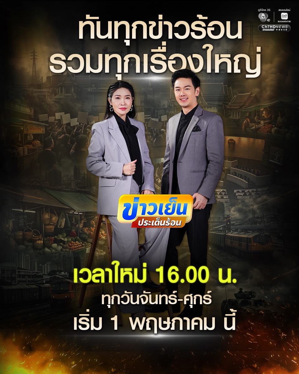 ติดตามความเคลื่อนไหวและข้อมูลข่าวสารได้ทาง ช่อง 7HD กด 35 หรือรับชมสดออนไลน์ผ่าน BUGABOO.TV พร้อมเกาะติดทุกประเด็นร้อนผ่านช่องทางออนไลน์ Ch7HD NEWS (Facebook, IG, TikTok) และ Ch7HD (Facebook, IG, TikTok, X, YouTube) หรือทางเว็บไซต์ www.ch7.com