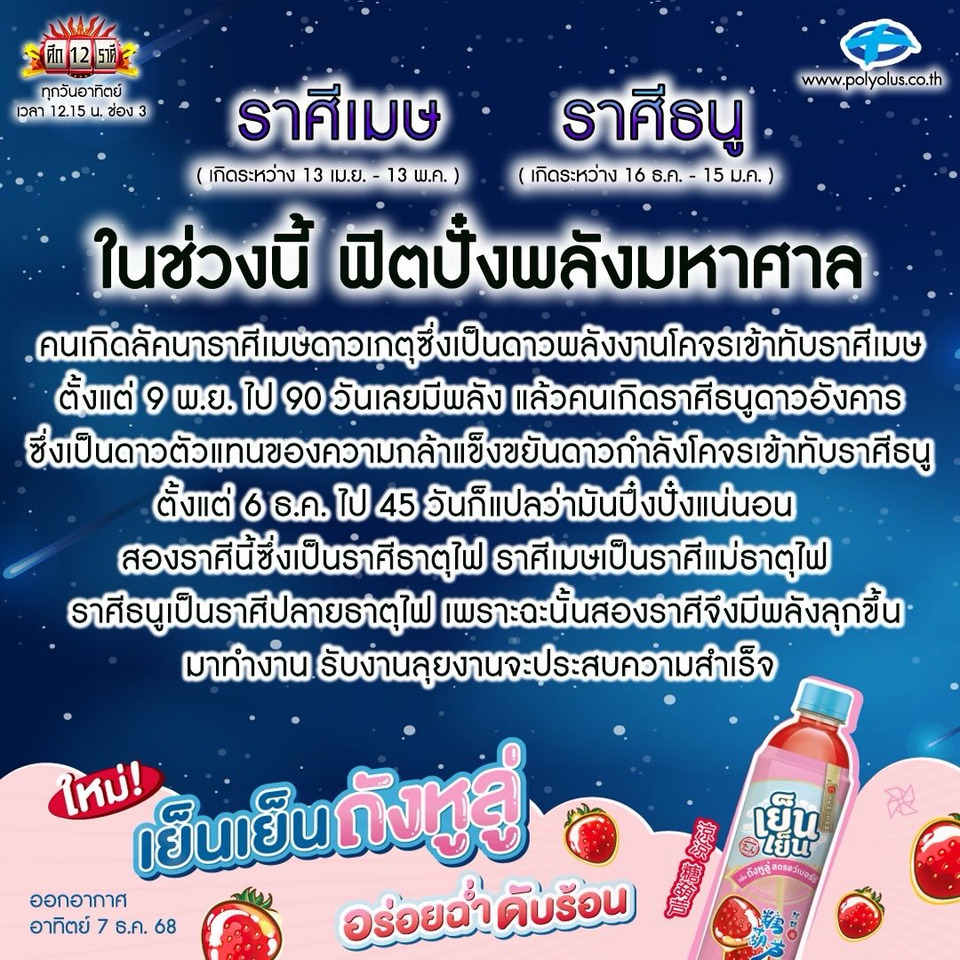 วันที่ 7 ธ.ค.68 "ลักษณ์ ราชสีห์" หรือ "หมอลักษณ์ ฟันธง" หมอดูชื่อดังของเมืองไทย ทำนายดวงผ่านอินสตาแกรม @polyplus_jad_hai ระบุว่า...