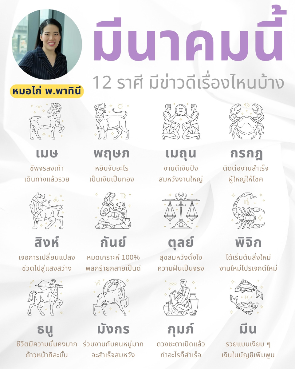 มีนาแล้ว ... ดวงคุณจะมีข่าวดีเรื่องไหน หมอไก่สรุปมาให้ ครบ 12 ราศี เรียบร้อยค่ะ ไหน ๆ ใครดวงดีเรื่องไหนบ้างค่ะ