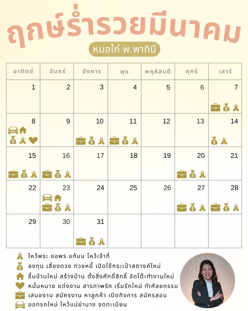 เซฟไว้ใช้ได้ตลอดเดือนค่ะ !! ฤกษ์ร่ำรวยเดือน มี.ค. 69 โดย หมอไก่ พ.พาทินี มาแล้วค่ะ เดือน มี.ค. ฤกษ์ดีมีหลายฤกษ์ เลือกใช้ตามนี้ดีแน่ แค่ใช้ฤกษ์ดีก็มีชัยไปกว่าครึ่งแล้วค่ะ